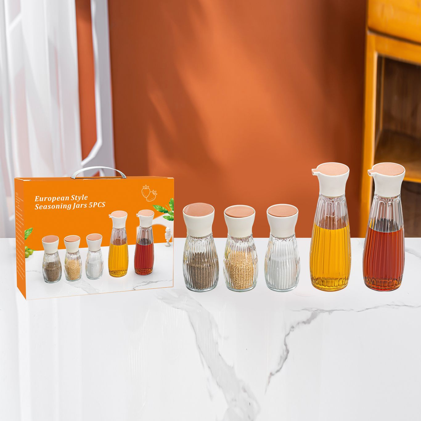 oil dispenser and seasoning set, 5 pieces per set, 24 sets per carton.