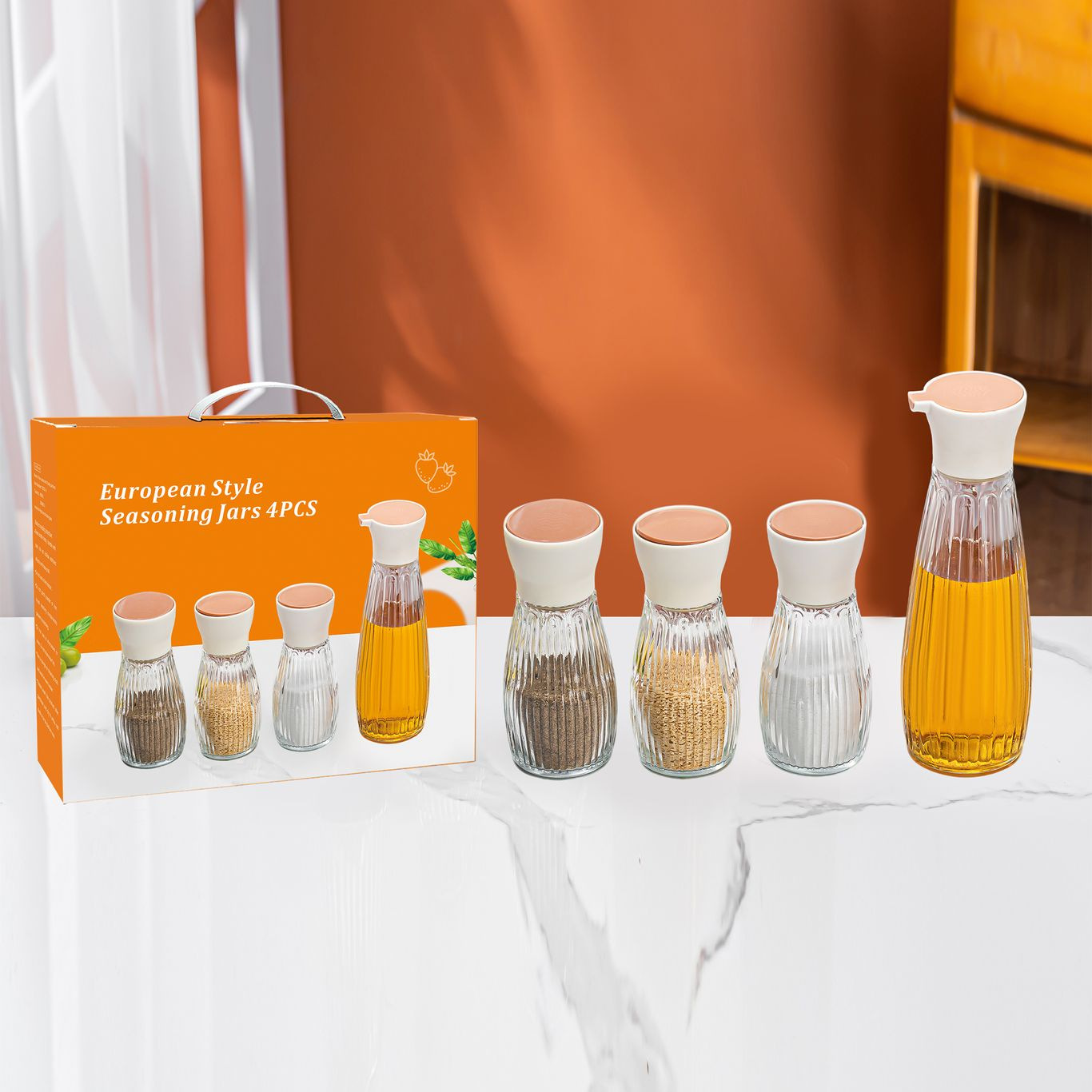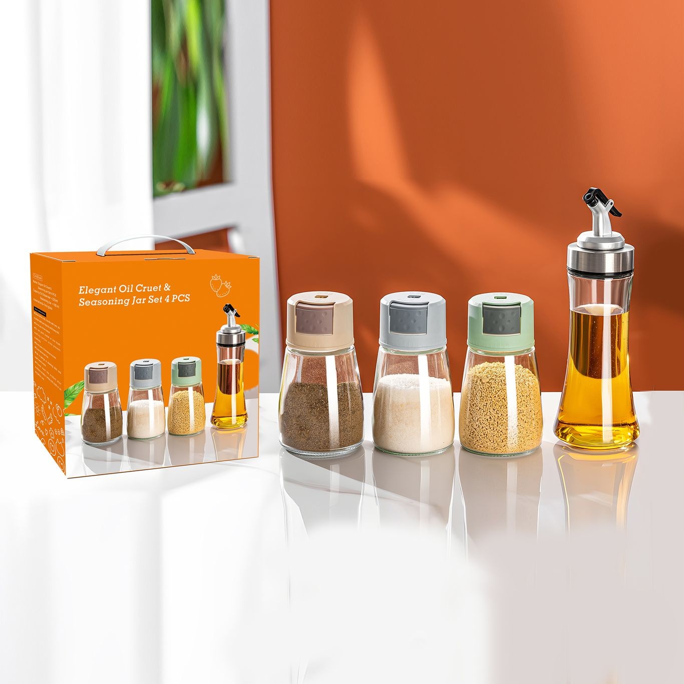 oil bottle and seasoning set, 4 pieces per set, 30 sets per carton.