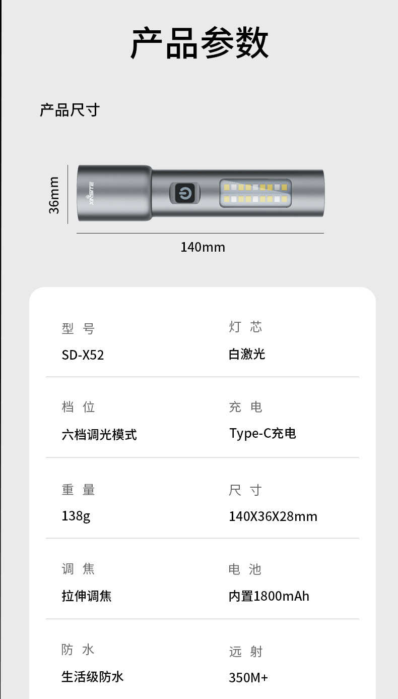 x52 white laser (1800mah + packaging wiring)