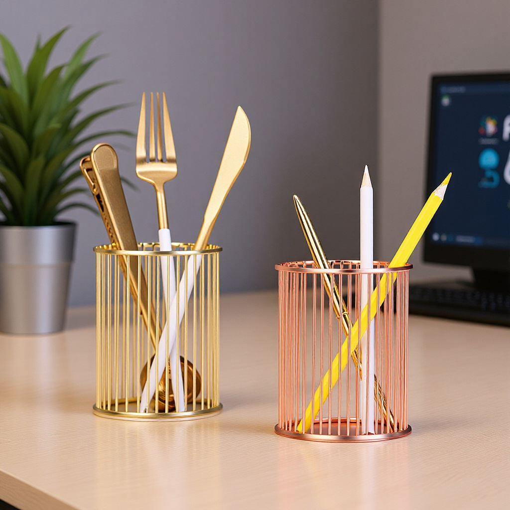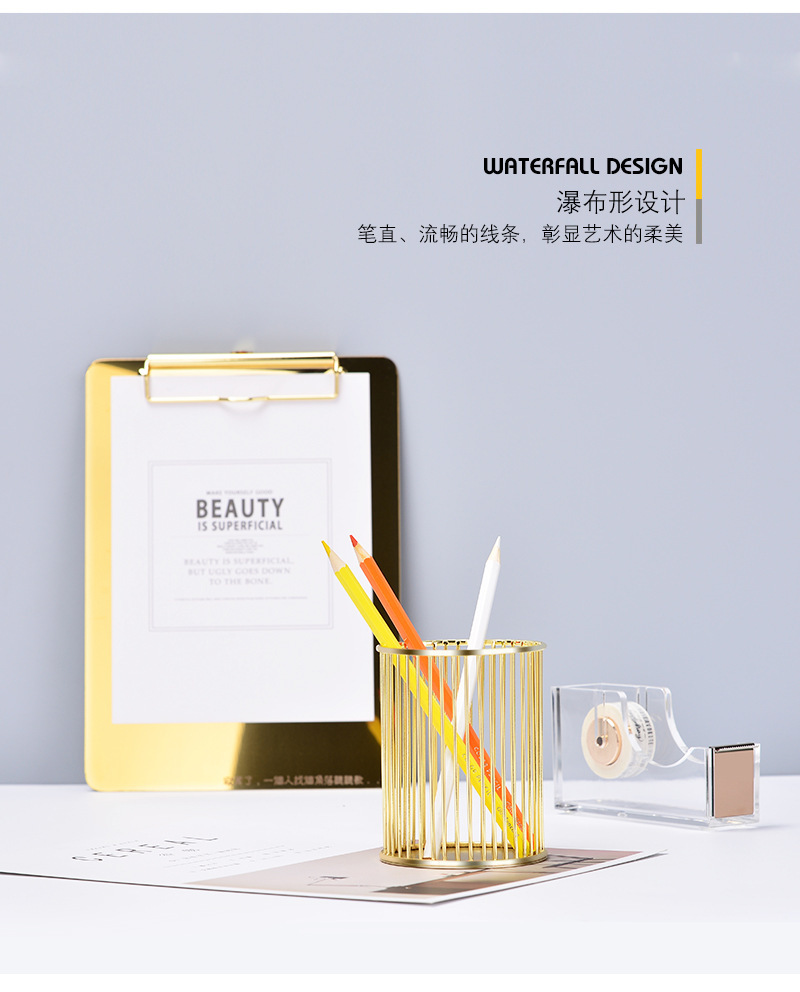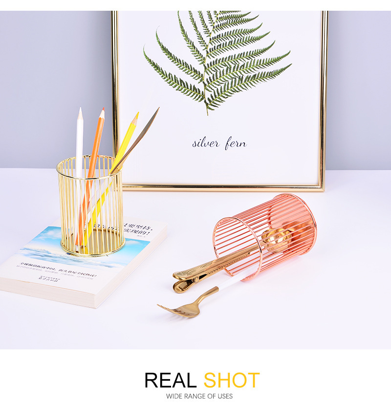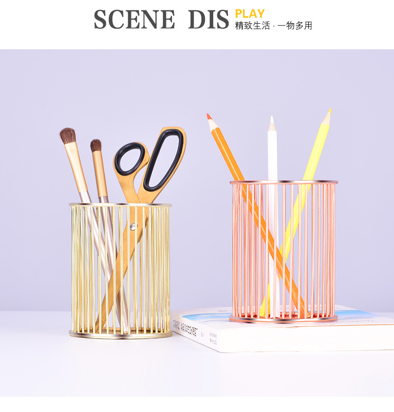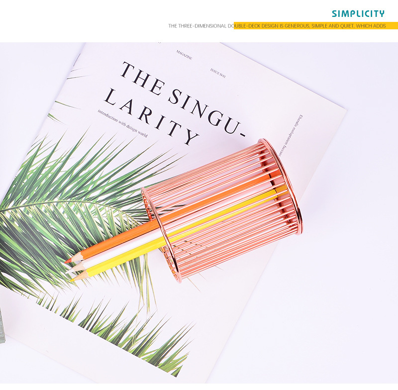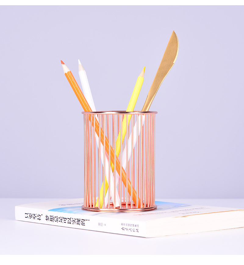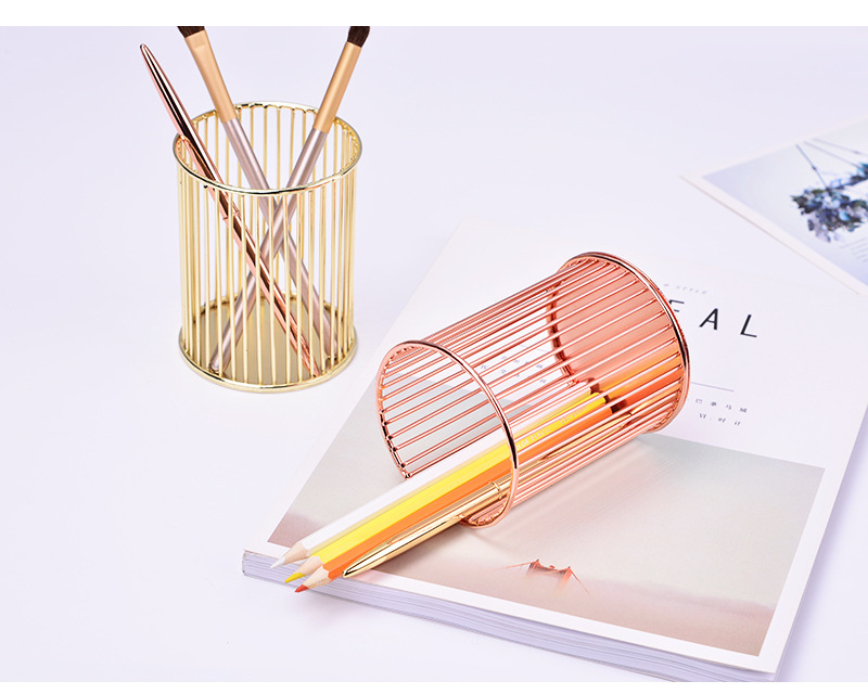 specifications: round gold pen holder, round rose gold pen holder