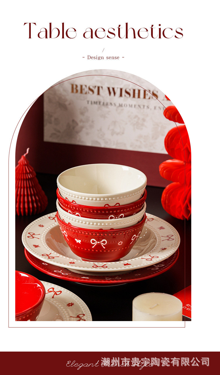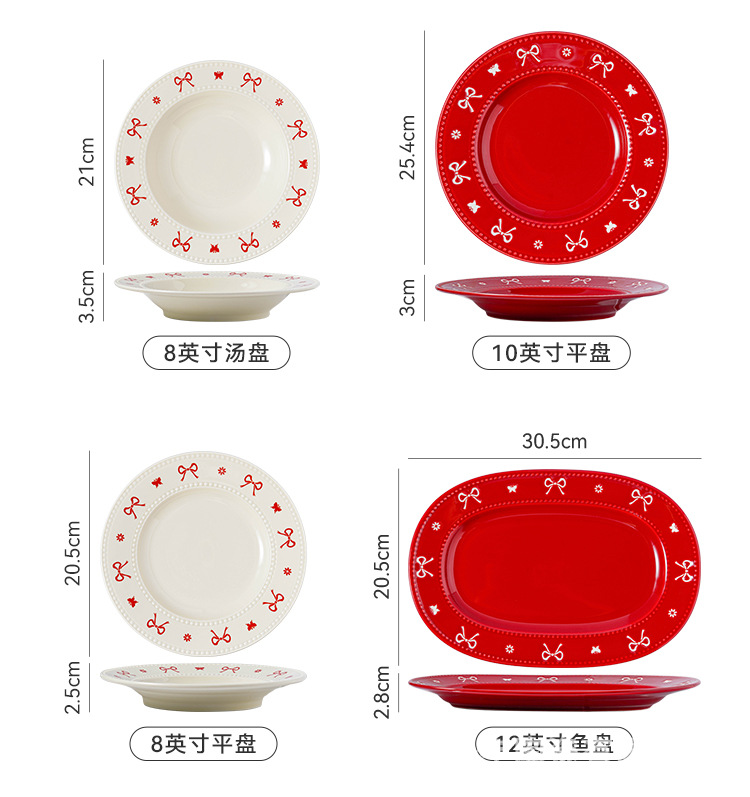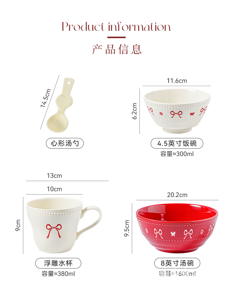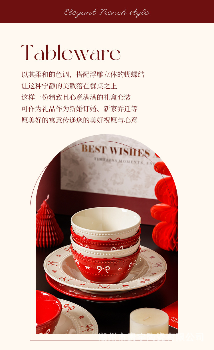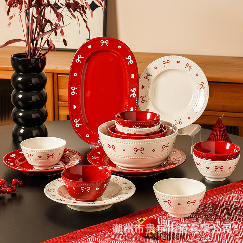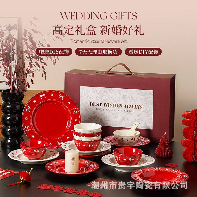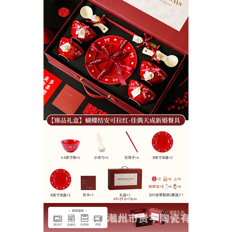 [zhenpin gift box] bow red-bowl saucers soup bowl 11-piece set