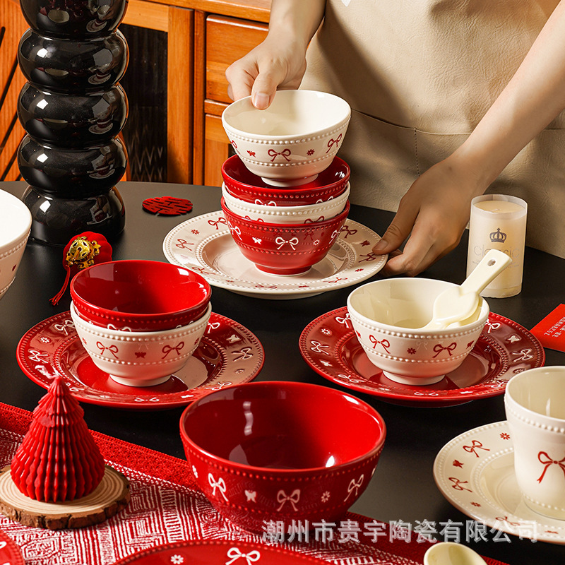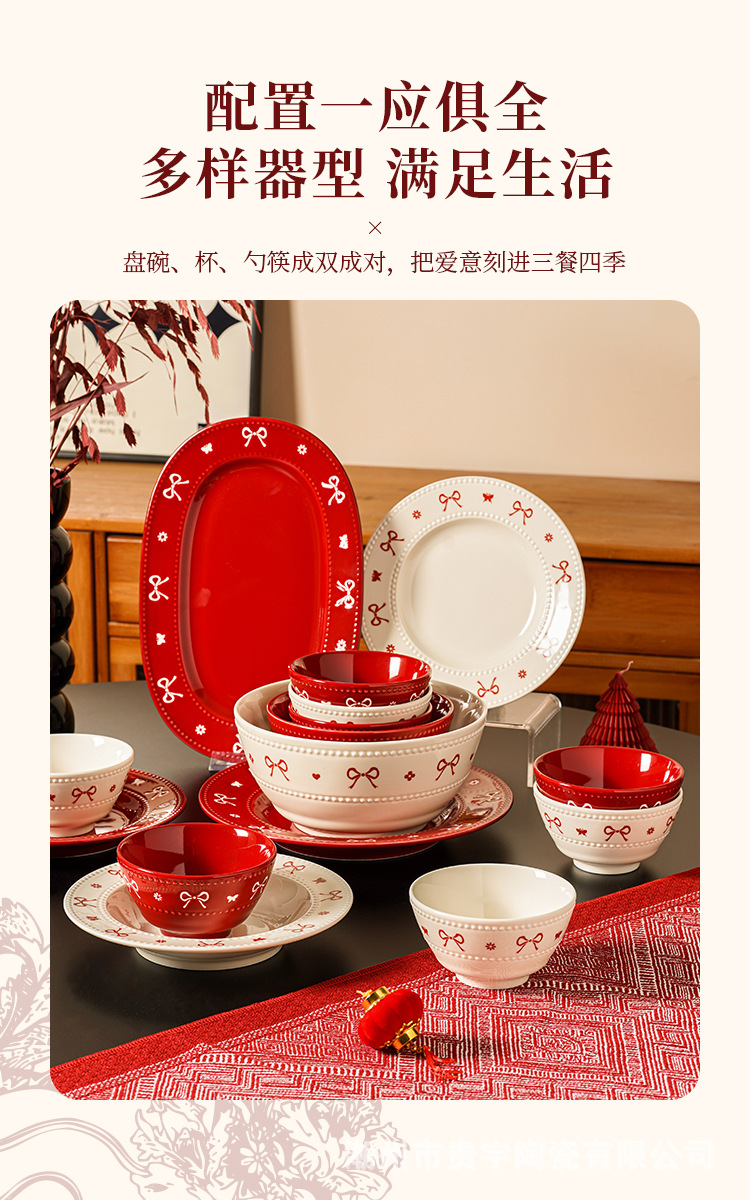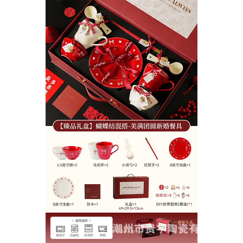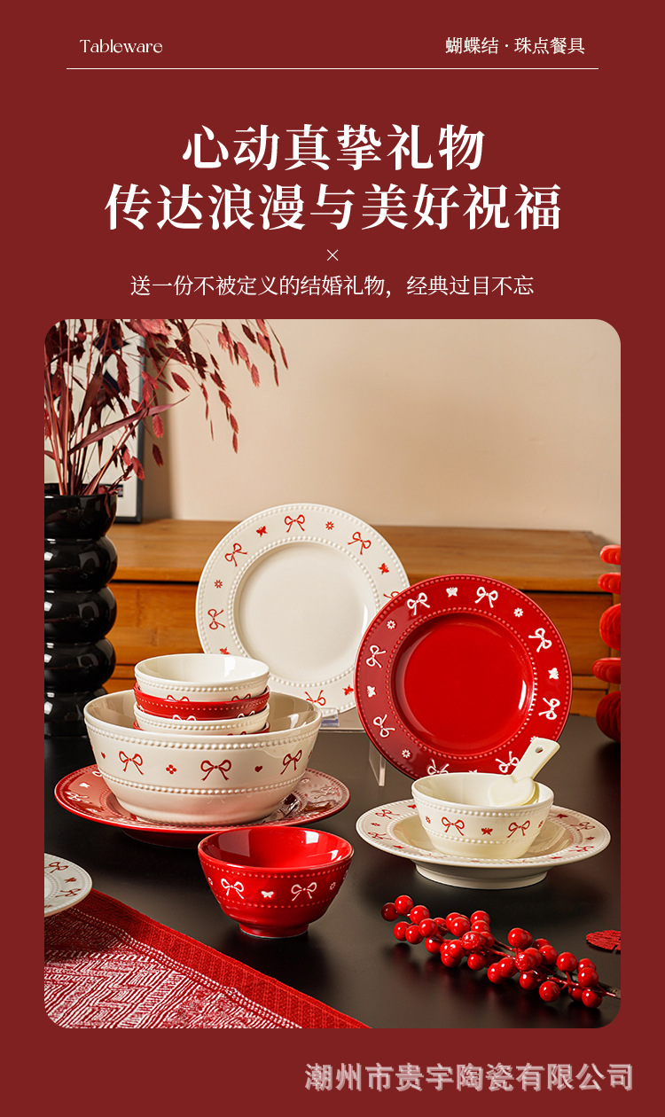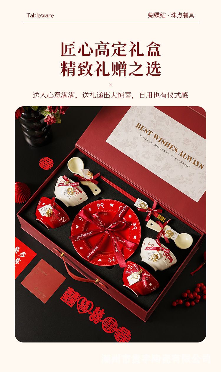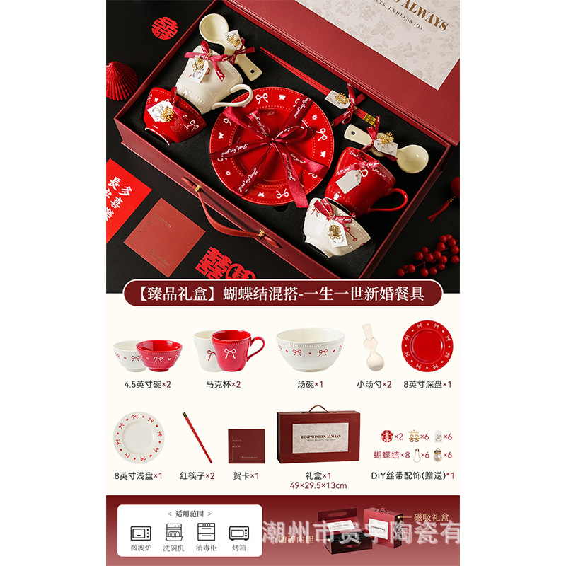 [zhenpin gift box] bowknot red-happy reunion bowl saucers 10-piece set
