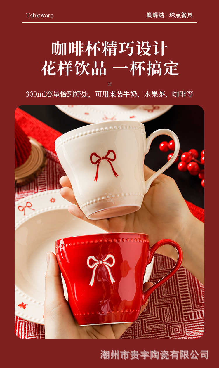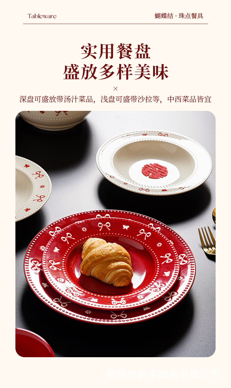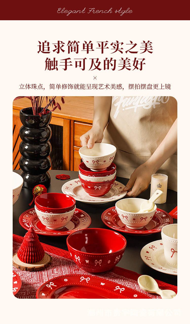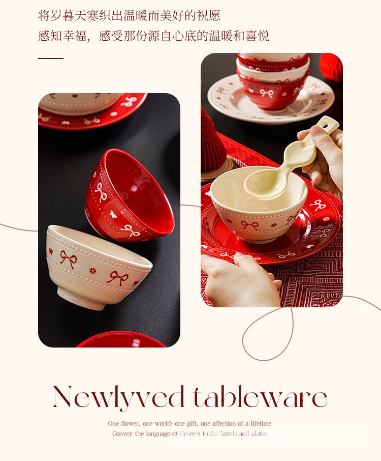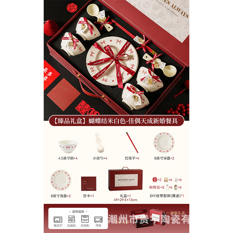 [zhenpin gift box] bowknot red-happy reunion bowl saucers 10-piece set
