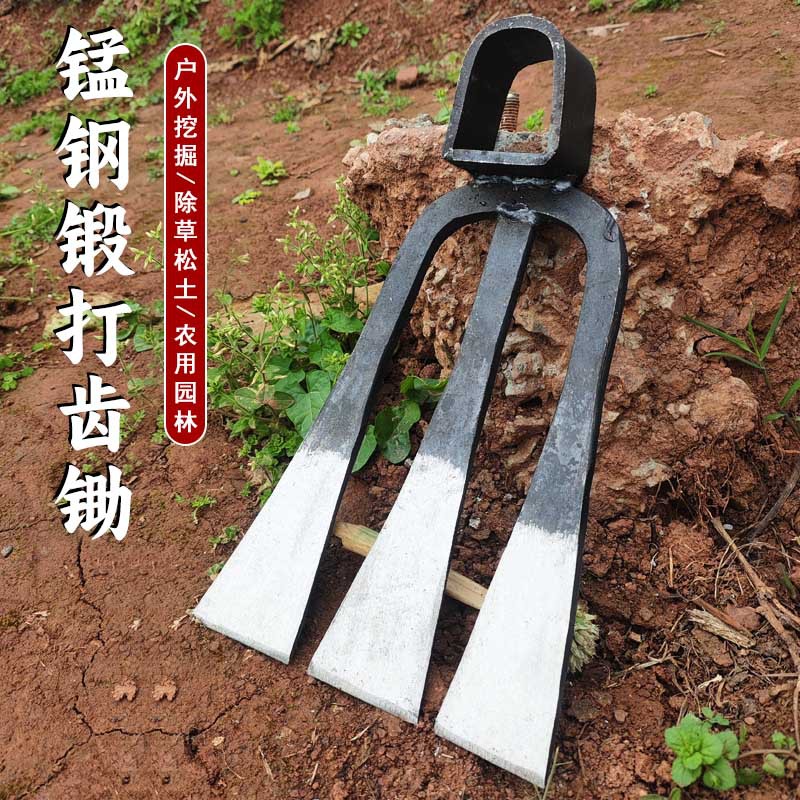 widened three-tooth hoe [single hoe]]