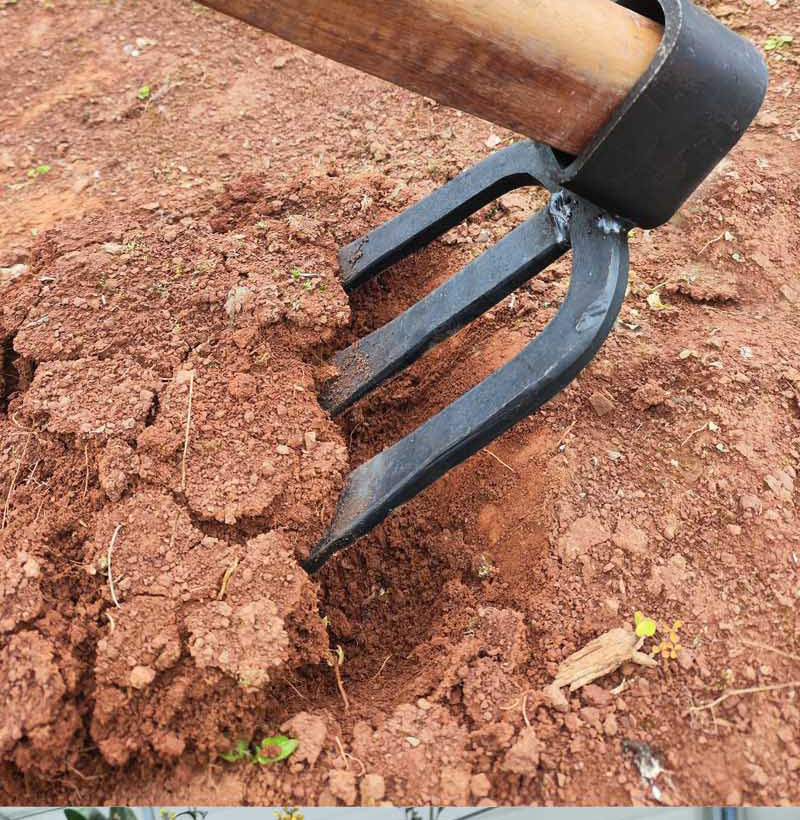 two-tooth hoe [large single hoe]]