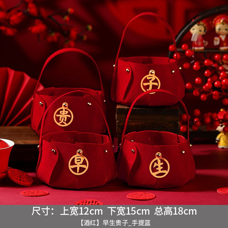 born early_wine red non-woven fabric basket