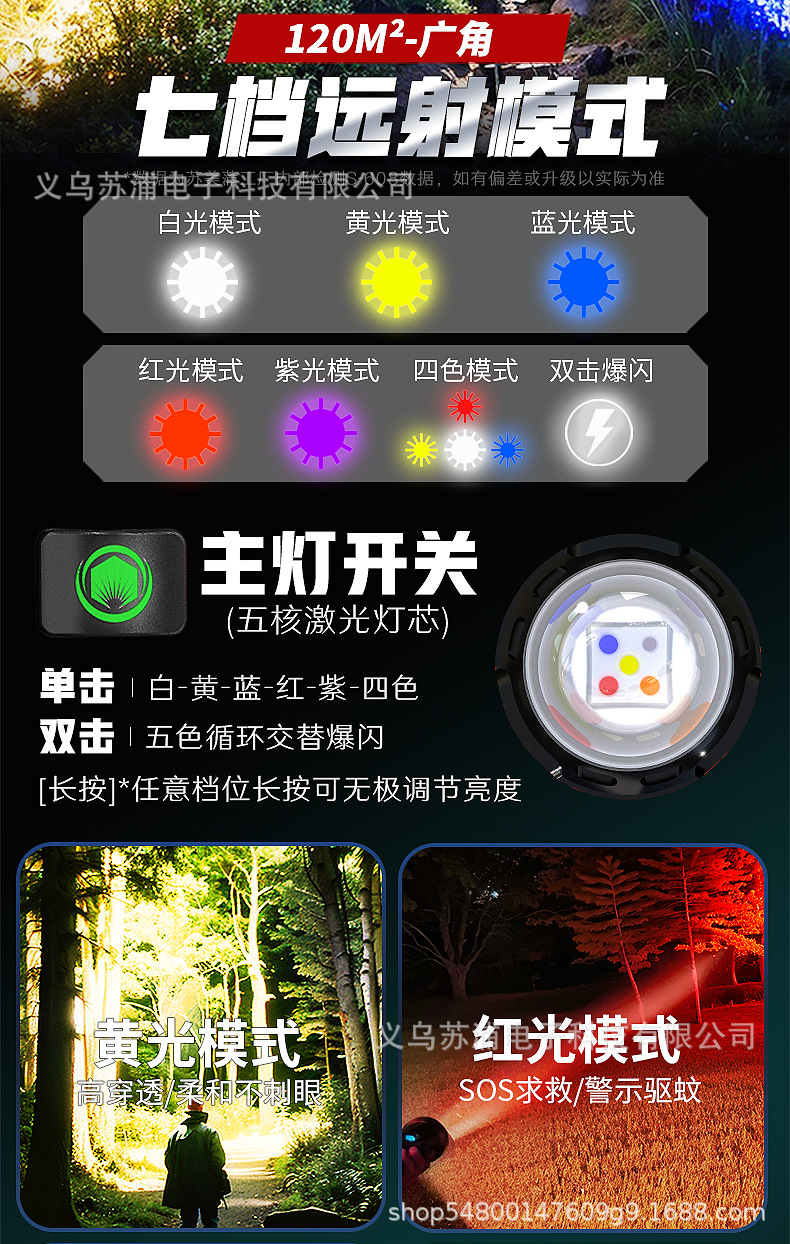 s-608 five-color laser flashlight (send bracket + strap + ignition lens)