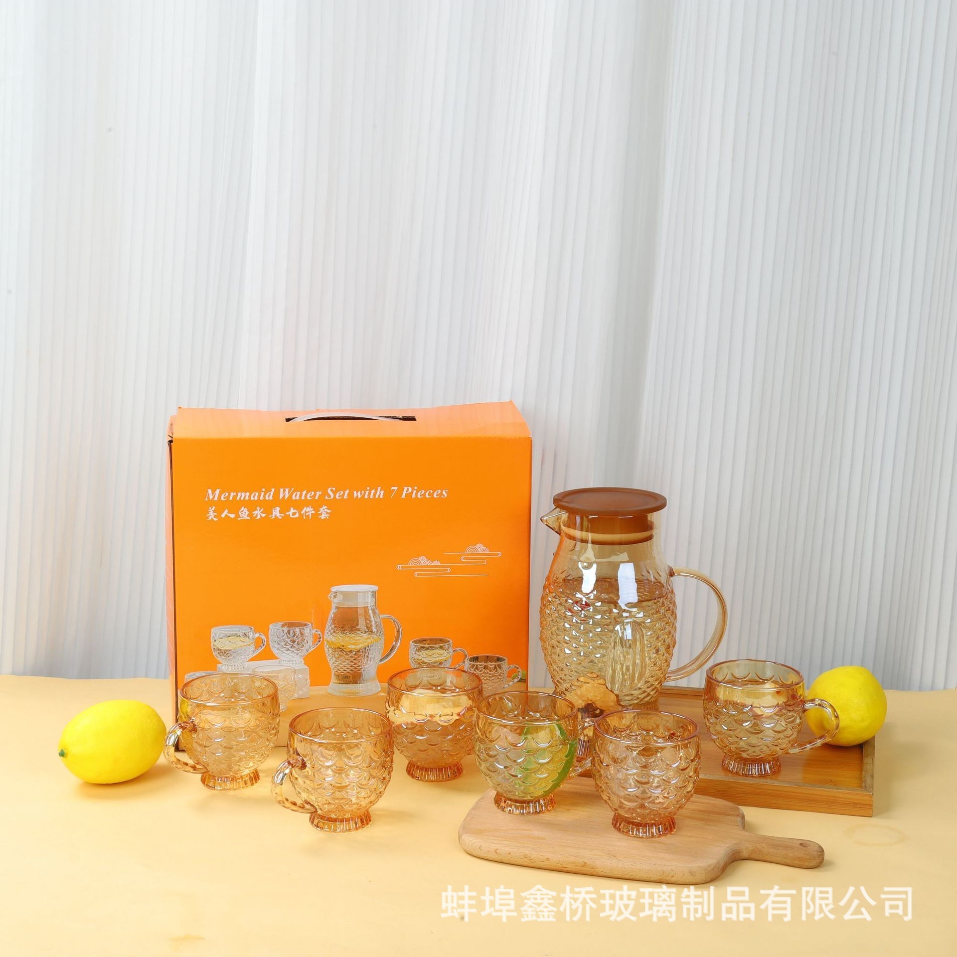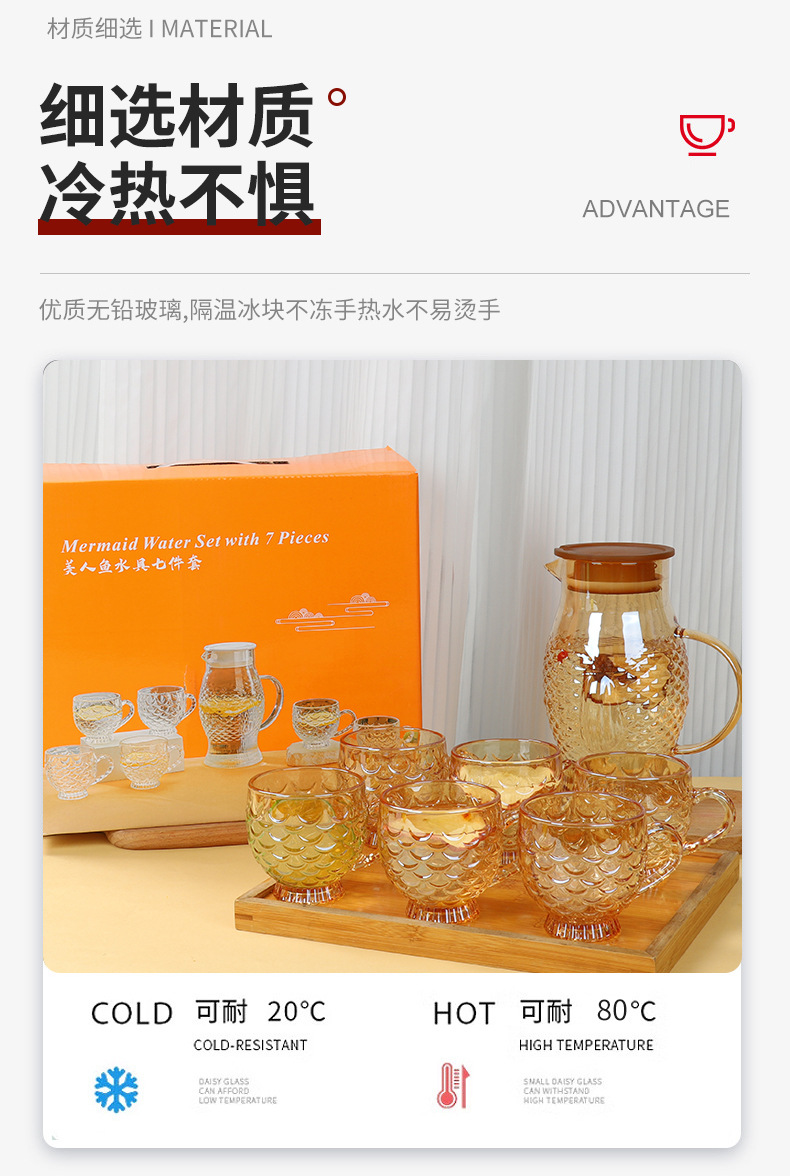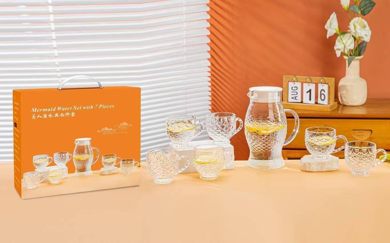 specifications: transparent drinking ware seven-piece 12 sets/box, amber drinking ware seven-piece