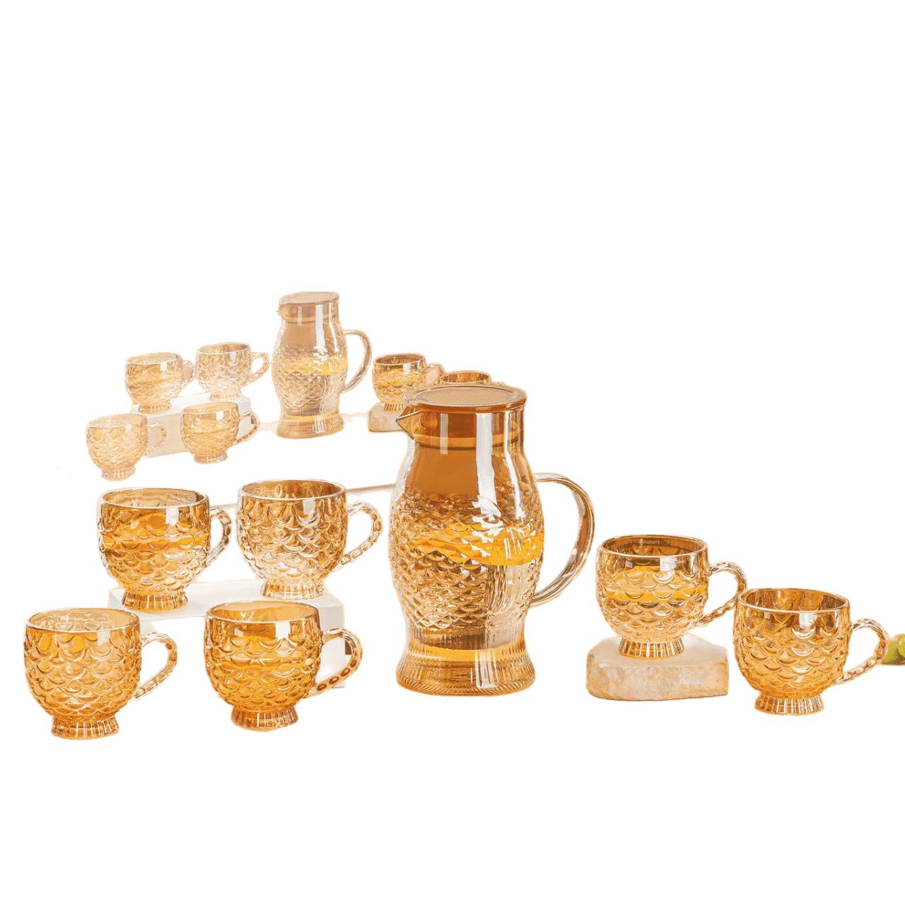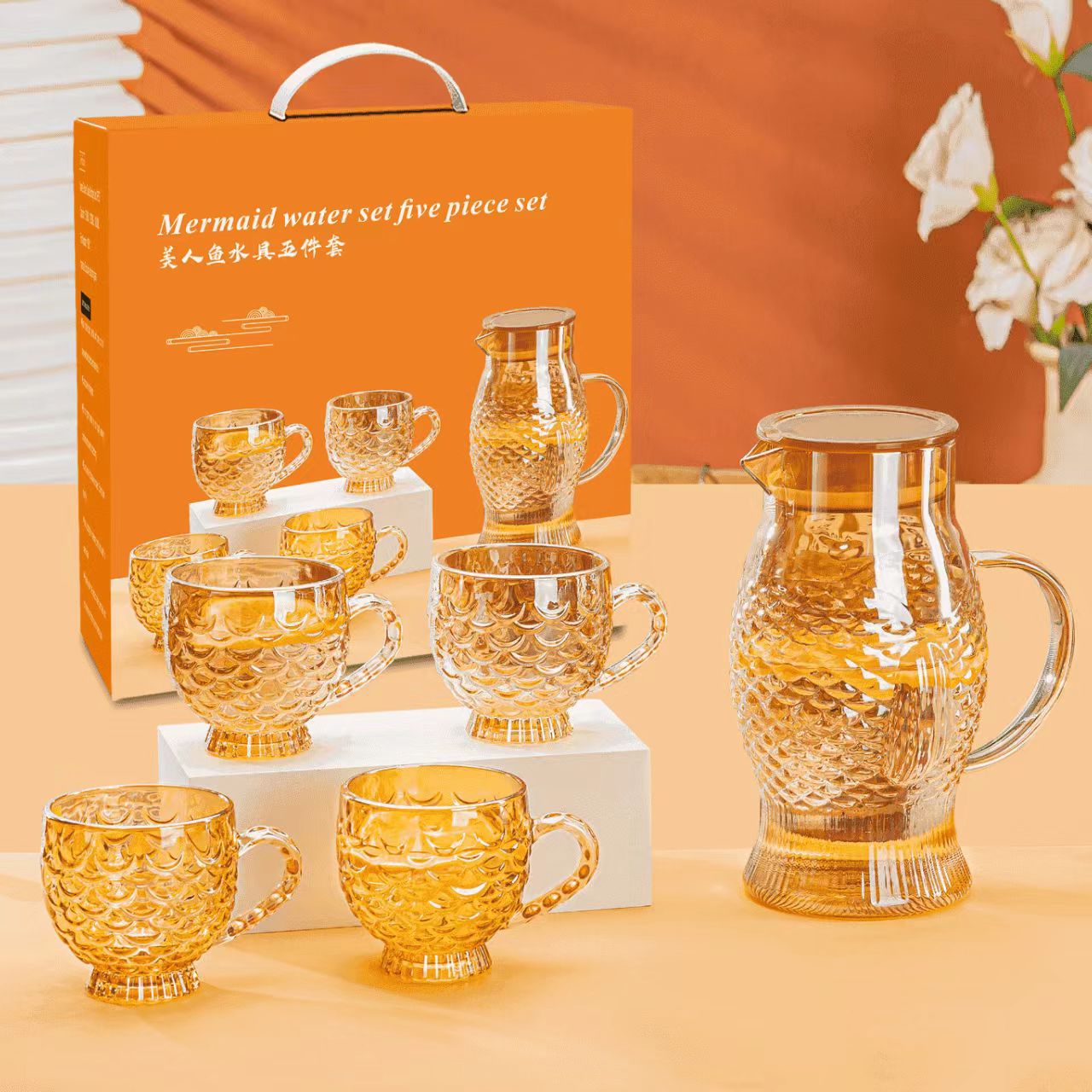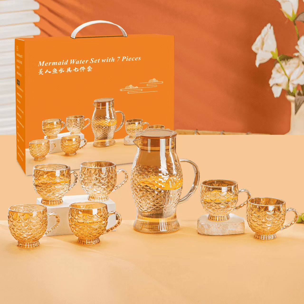 specifications: transparent drinking ware seven-piece 12 sets/box, amber drinking ware seven-piece