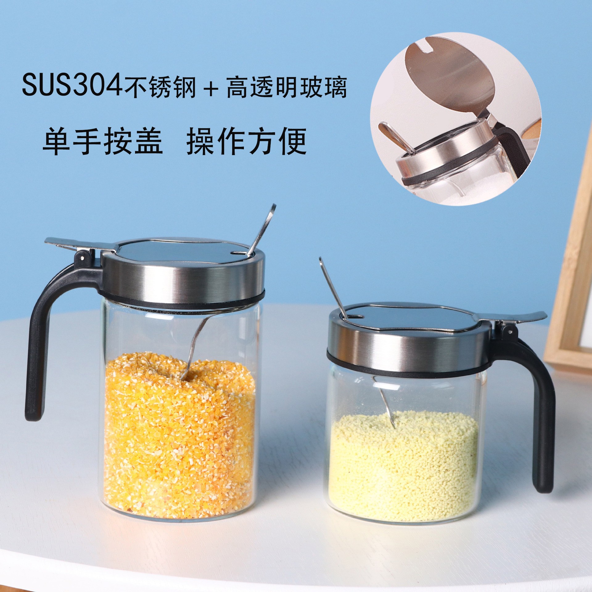 specifications: stainless steel cover 300ml salt jar (with spoon), stainless steel cover