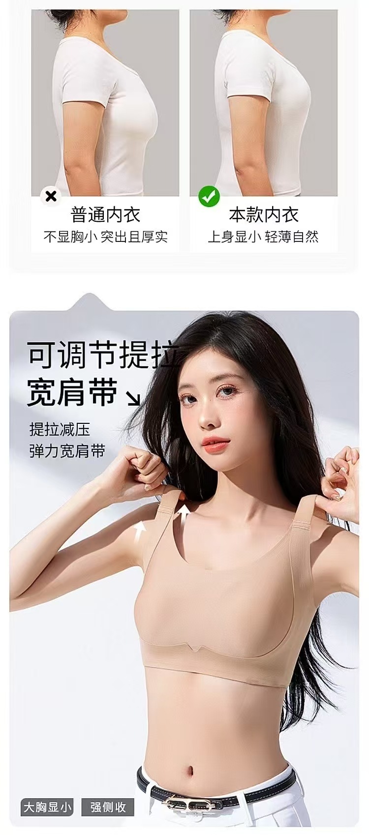 function: invisible, comfortable, big chest makes me look smaller