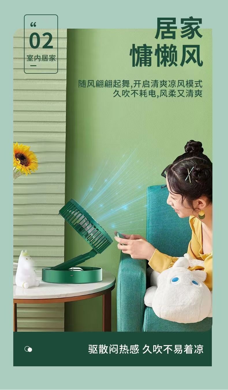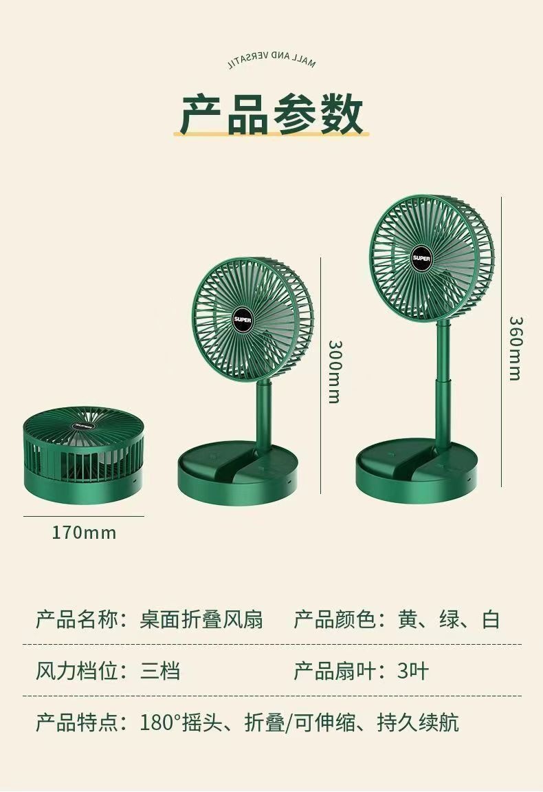 green rechargeable fan three gears (color box packaging)