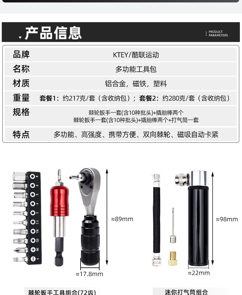 tool mix pack [ratchet tool + pry tire bar + tire pump + air nozzle converter] package 2