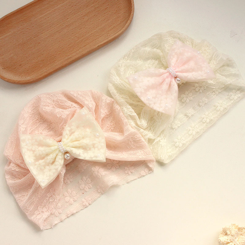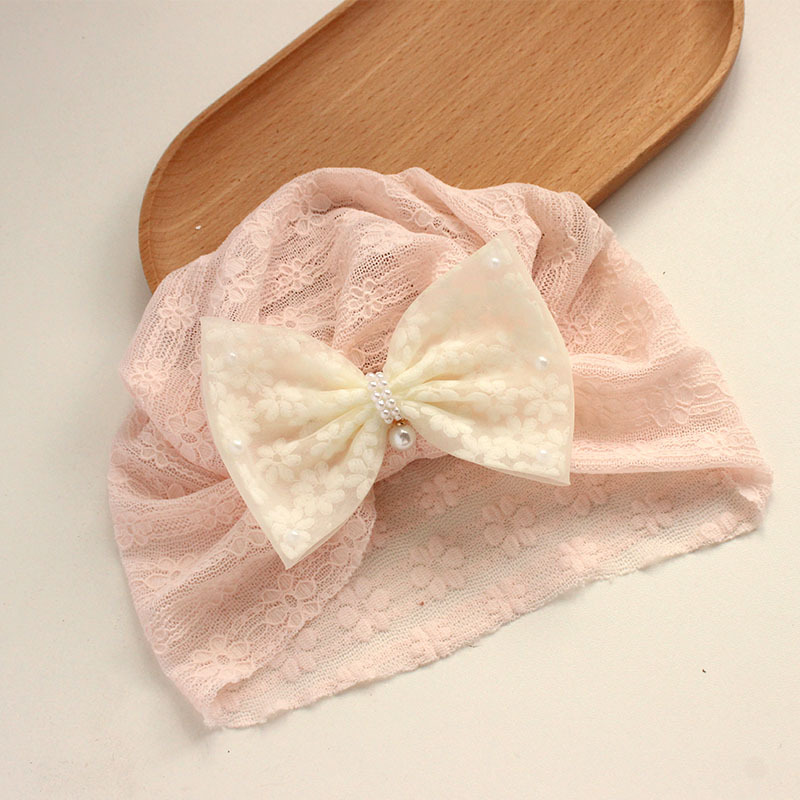 pink floral velvet bow beige fine lines lace decor hat