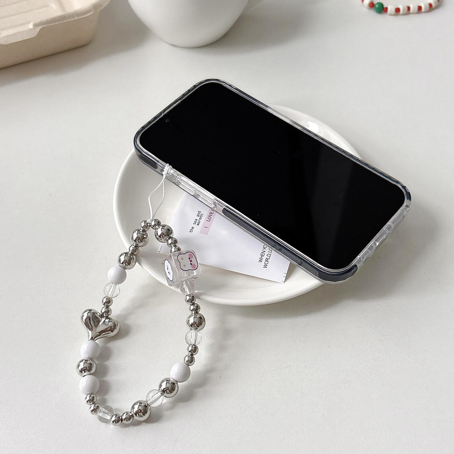 heart-shaped silver white beads (with clip)