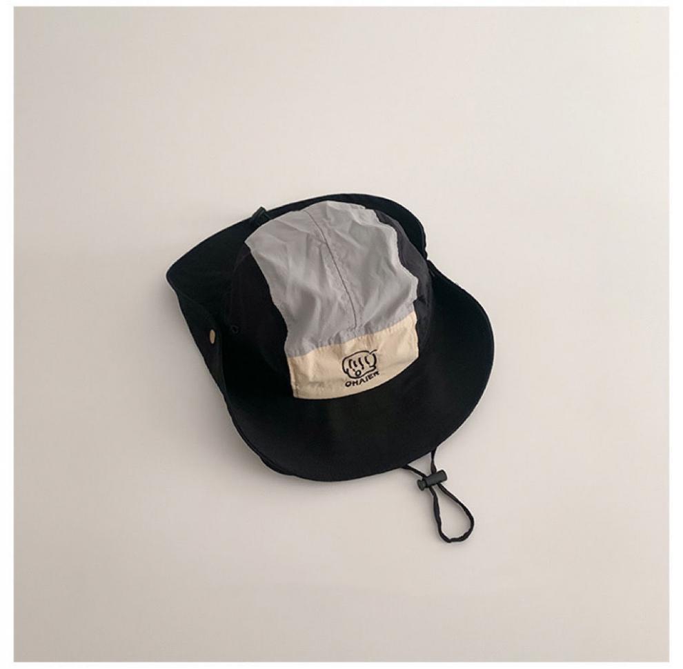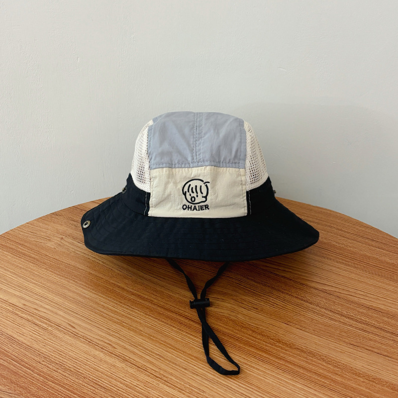 children's color matching bucket hat-black-mesh