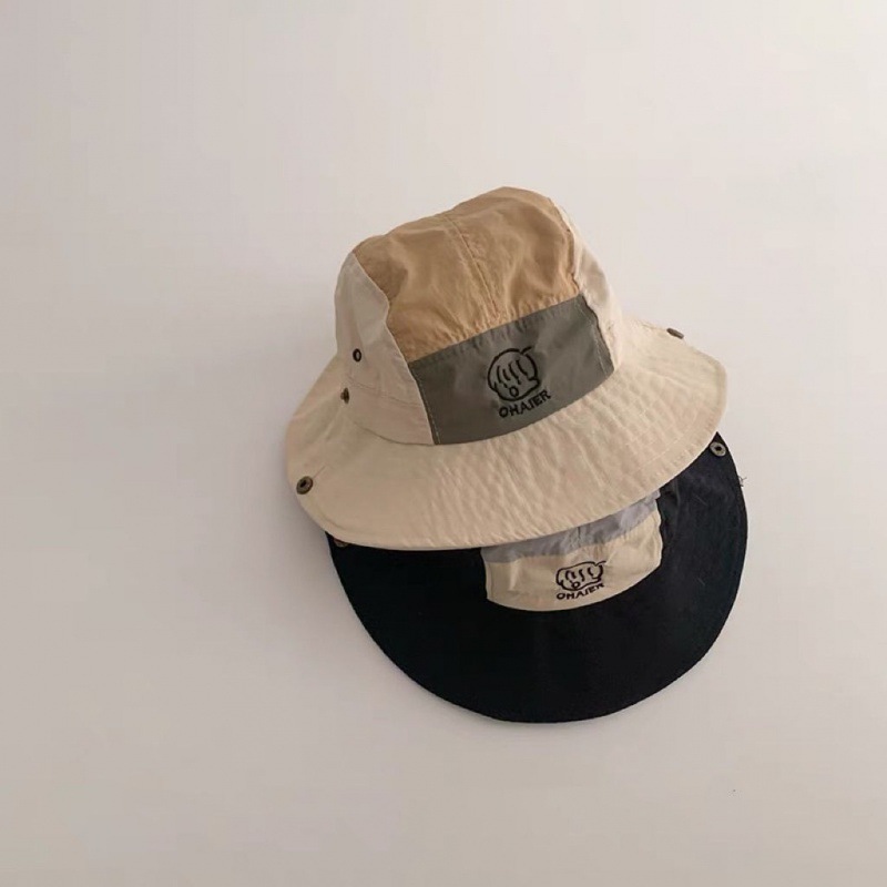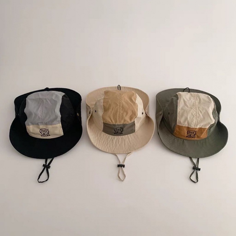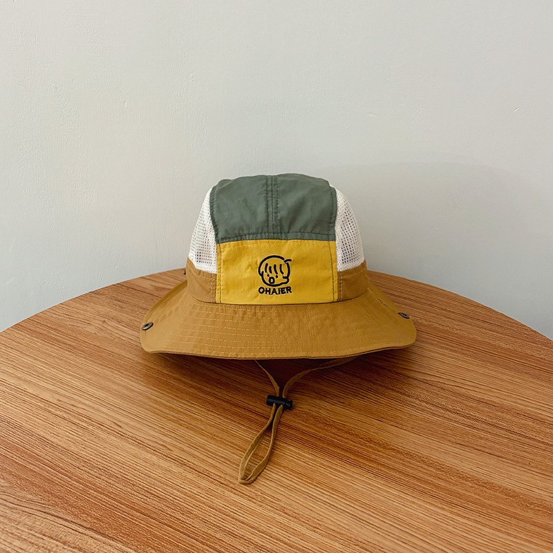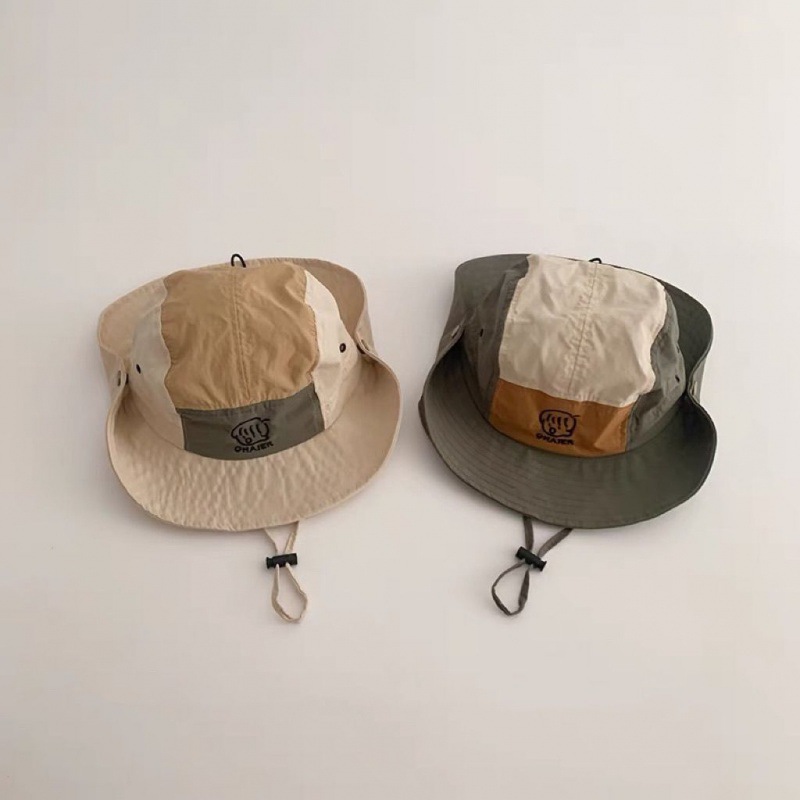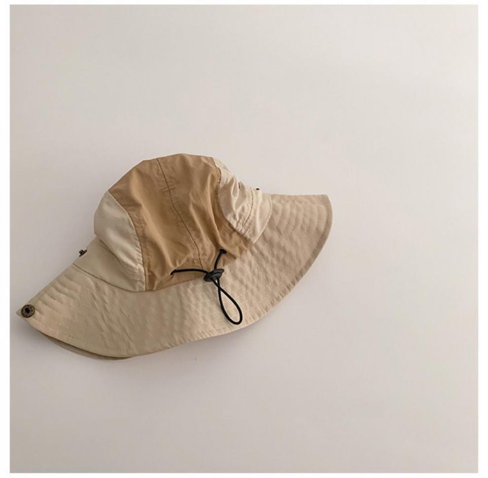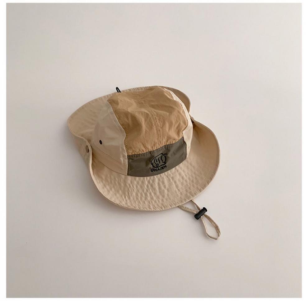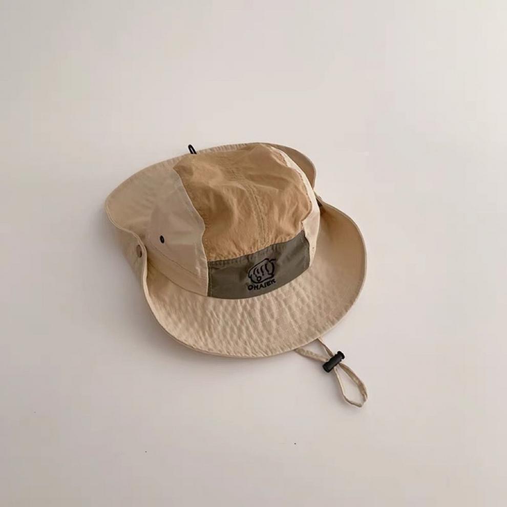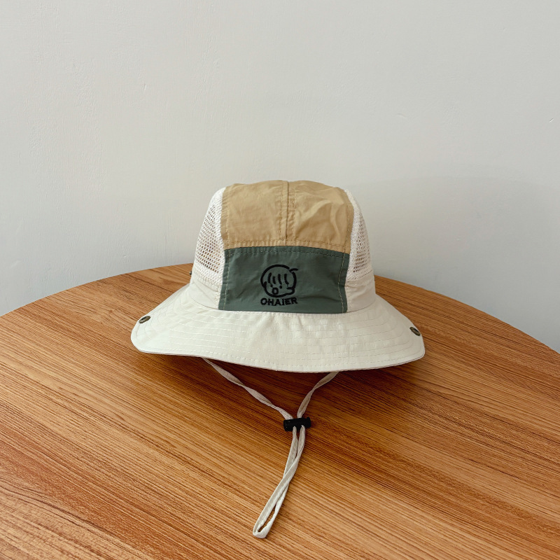 children's color matching bucket hat-beige-mesh