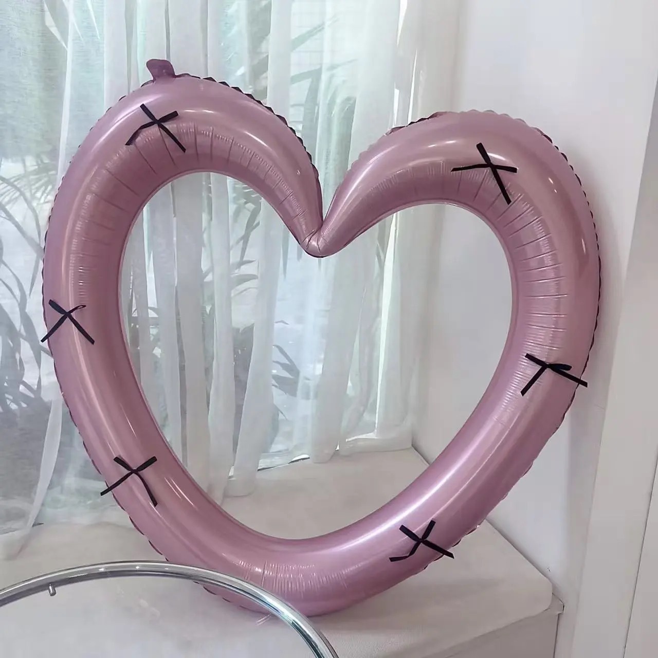 40-inch pink love photo frame + black ribbon [film glue]]