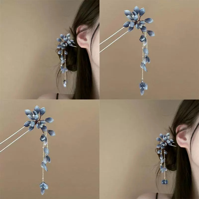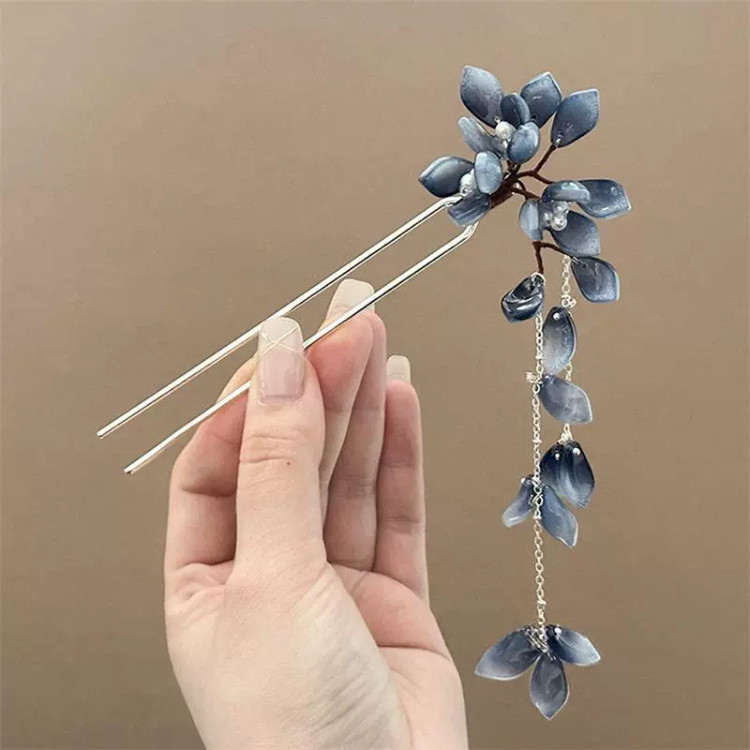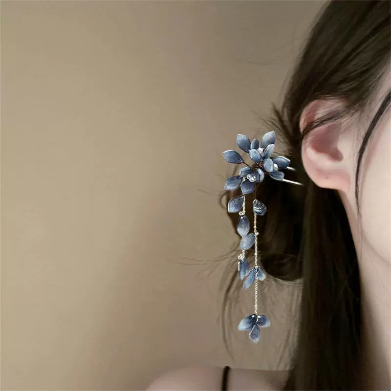 ink blue tassel hairpin