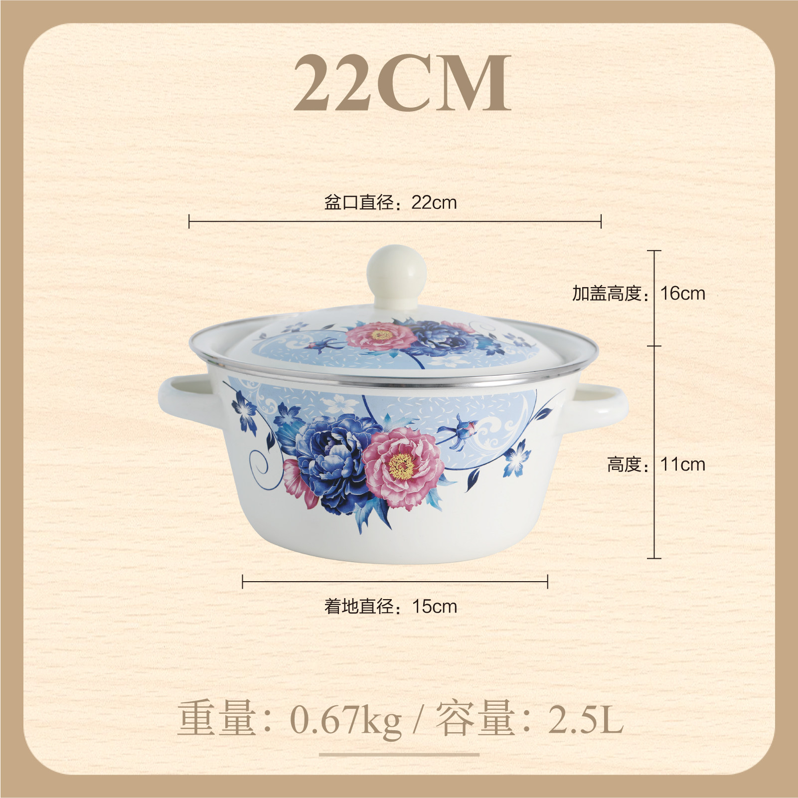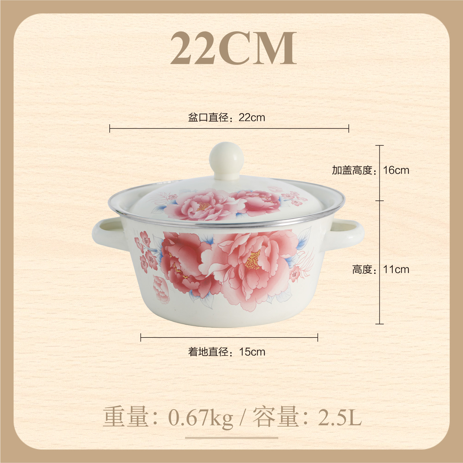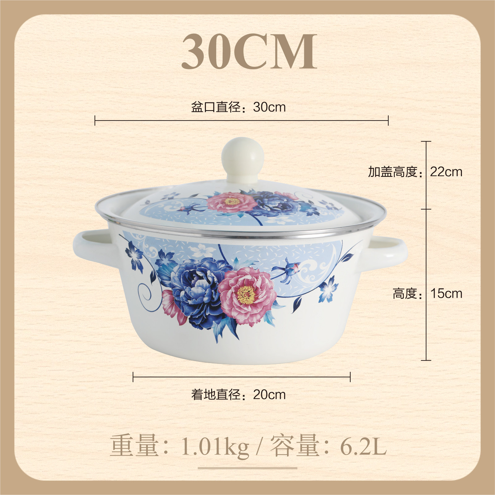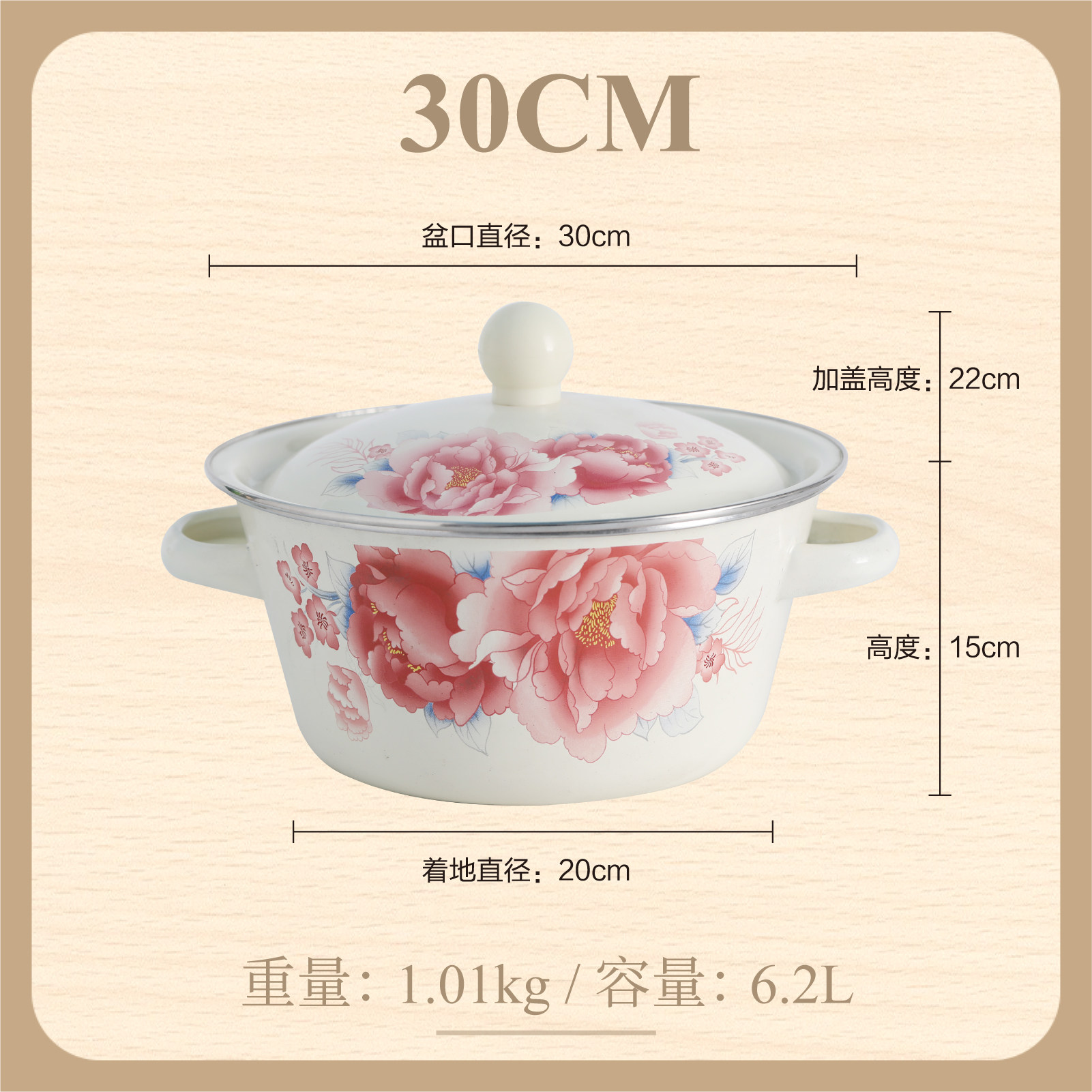 【double-thickened】 happiness matchmaking 20cm (6-inch) double-eared enamel basin