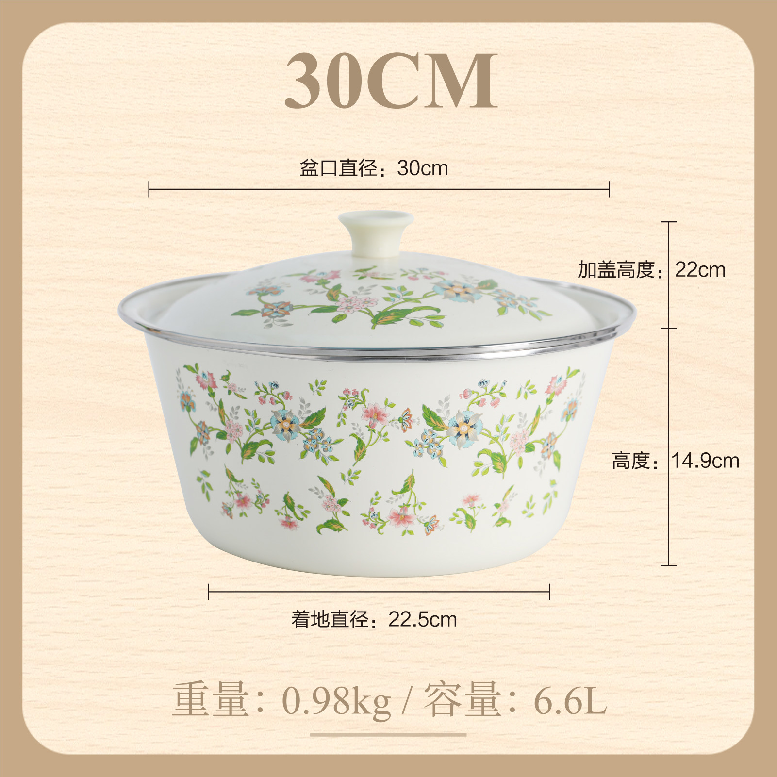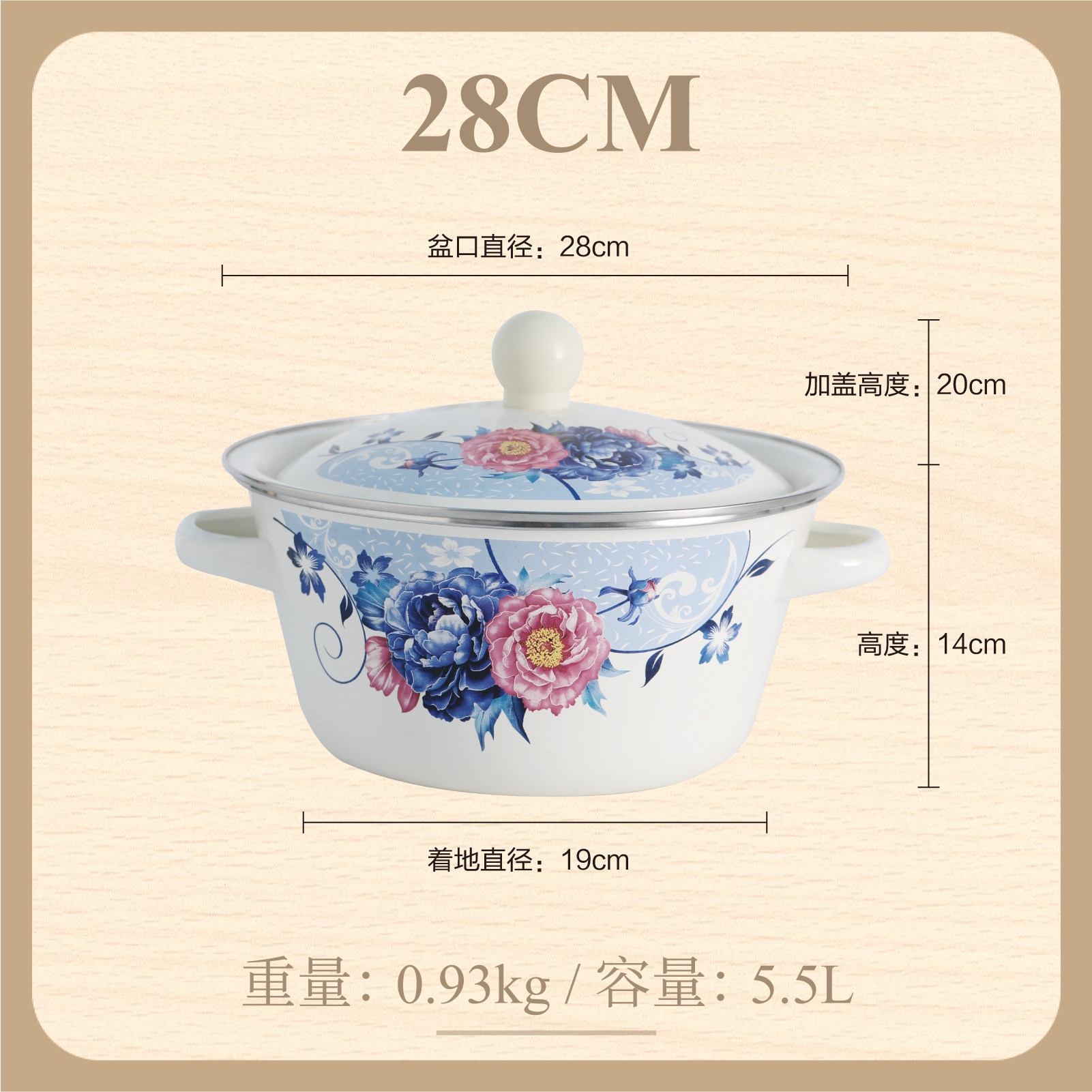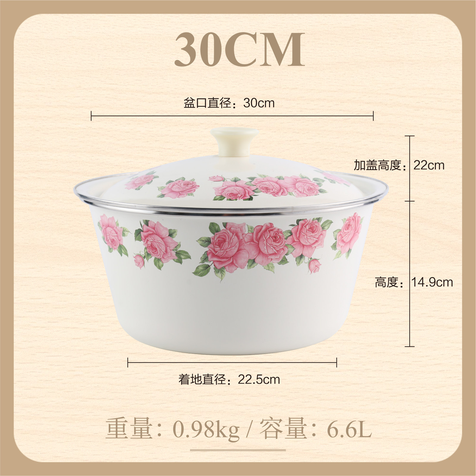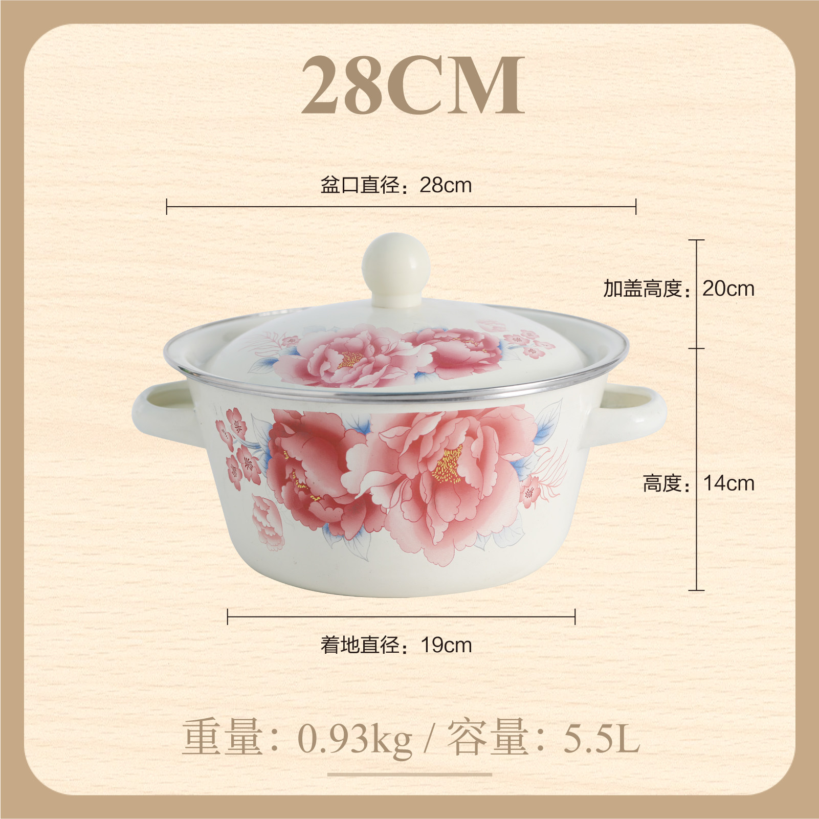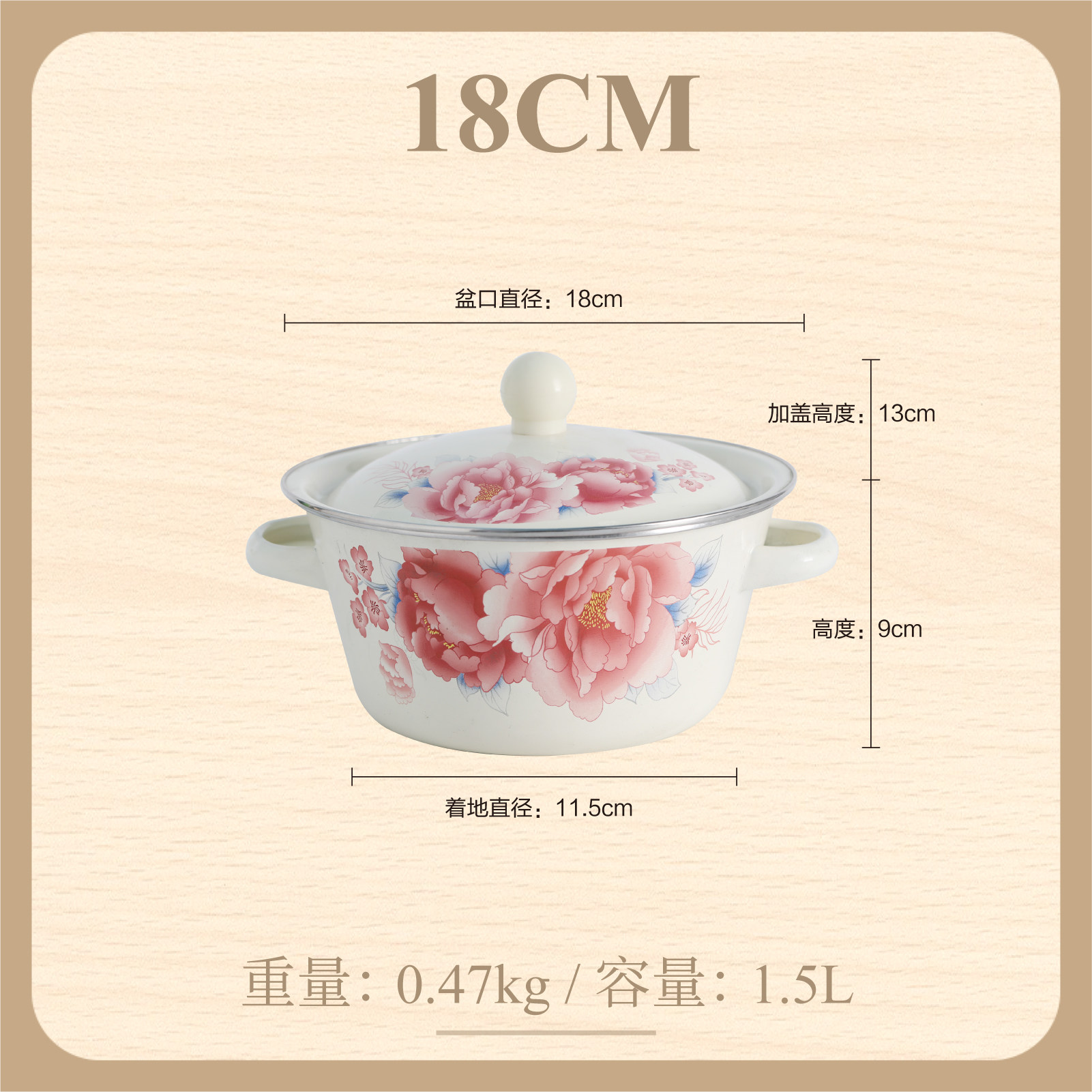 【double-thickened】 happiness matchmaking 20cm (6-inch) double-eared enamel basin