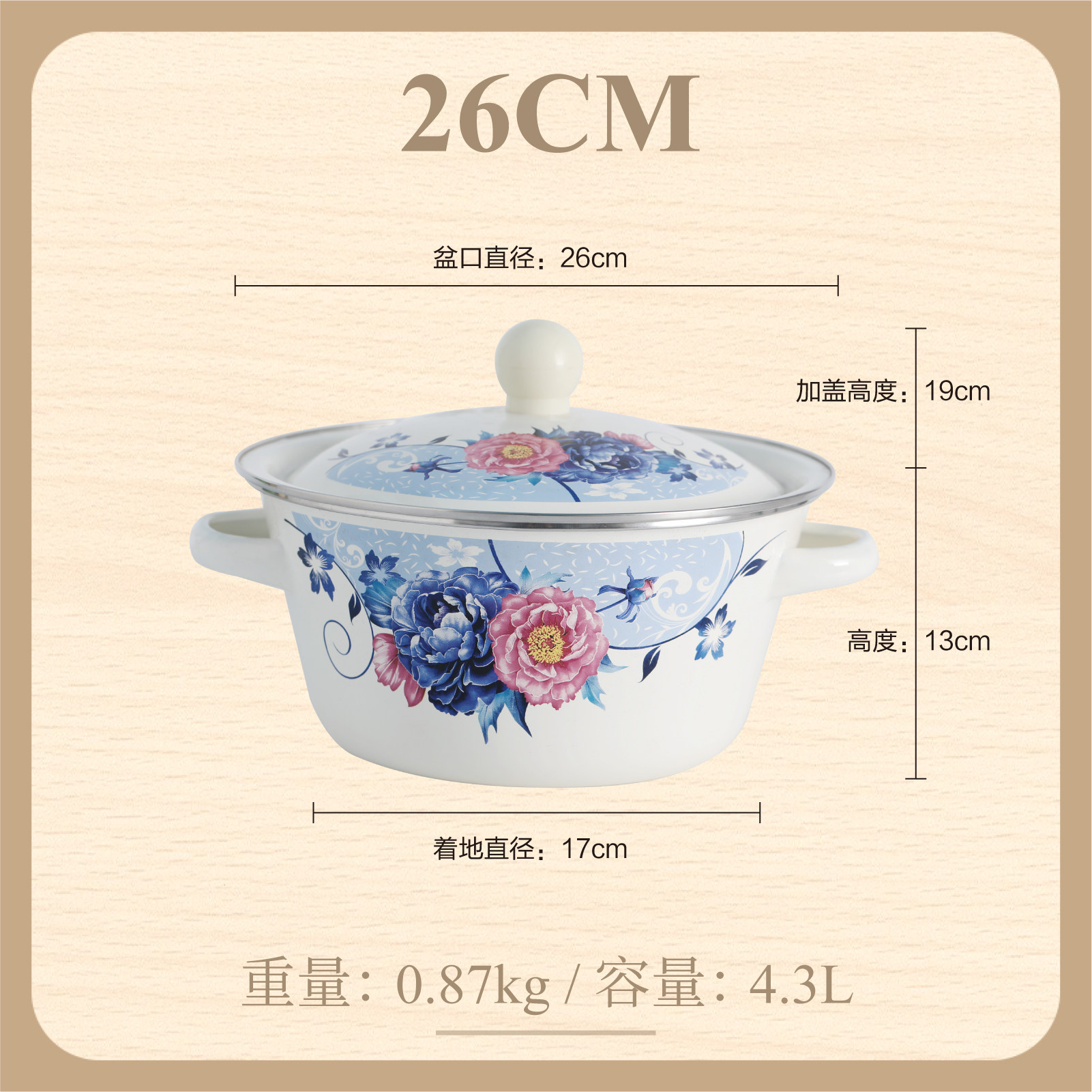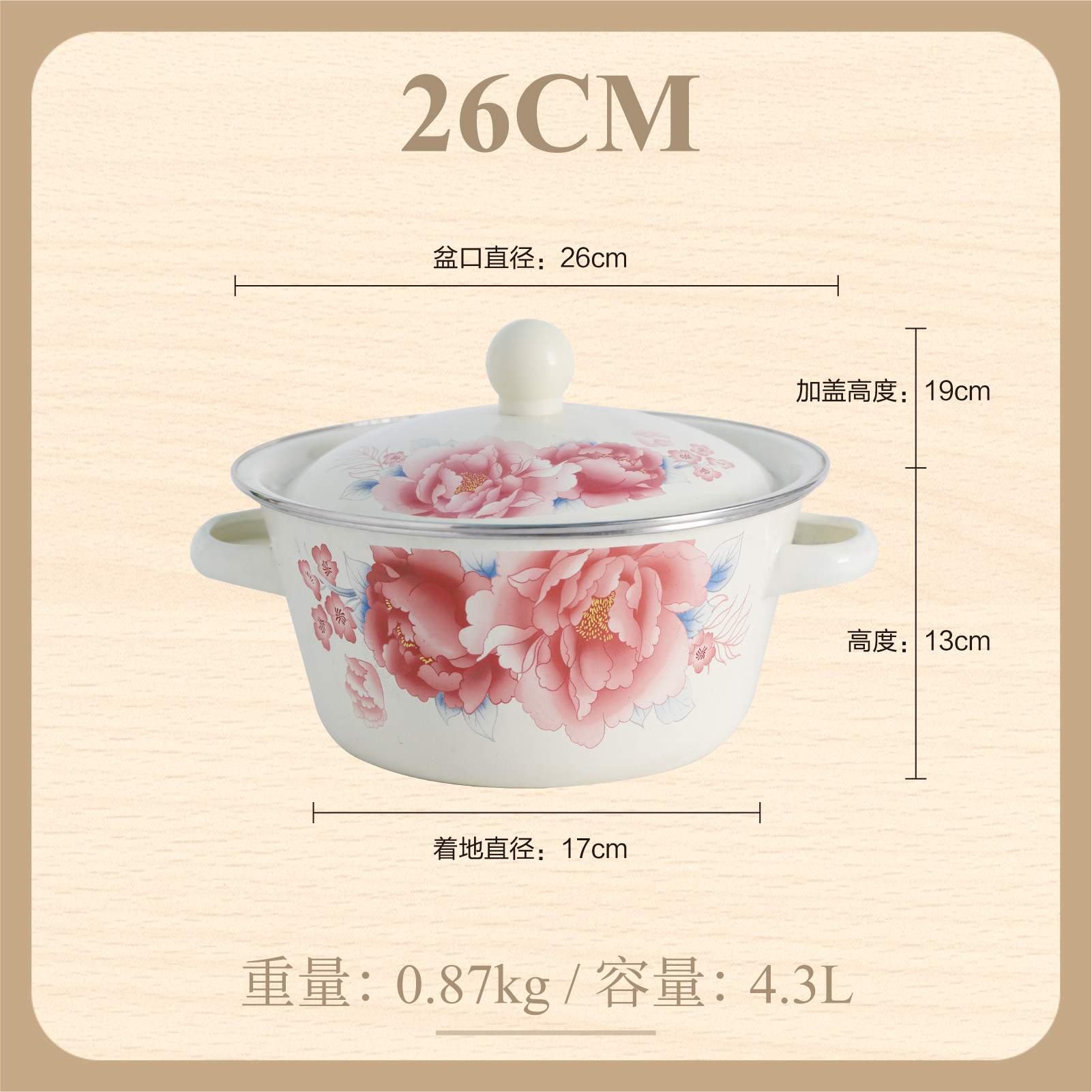 【double-thickened】 girl's spring 26cm (7.8-inch) double-eared enamel basin