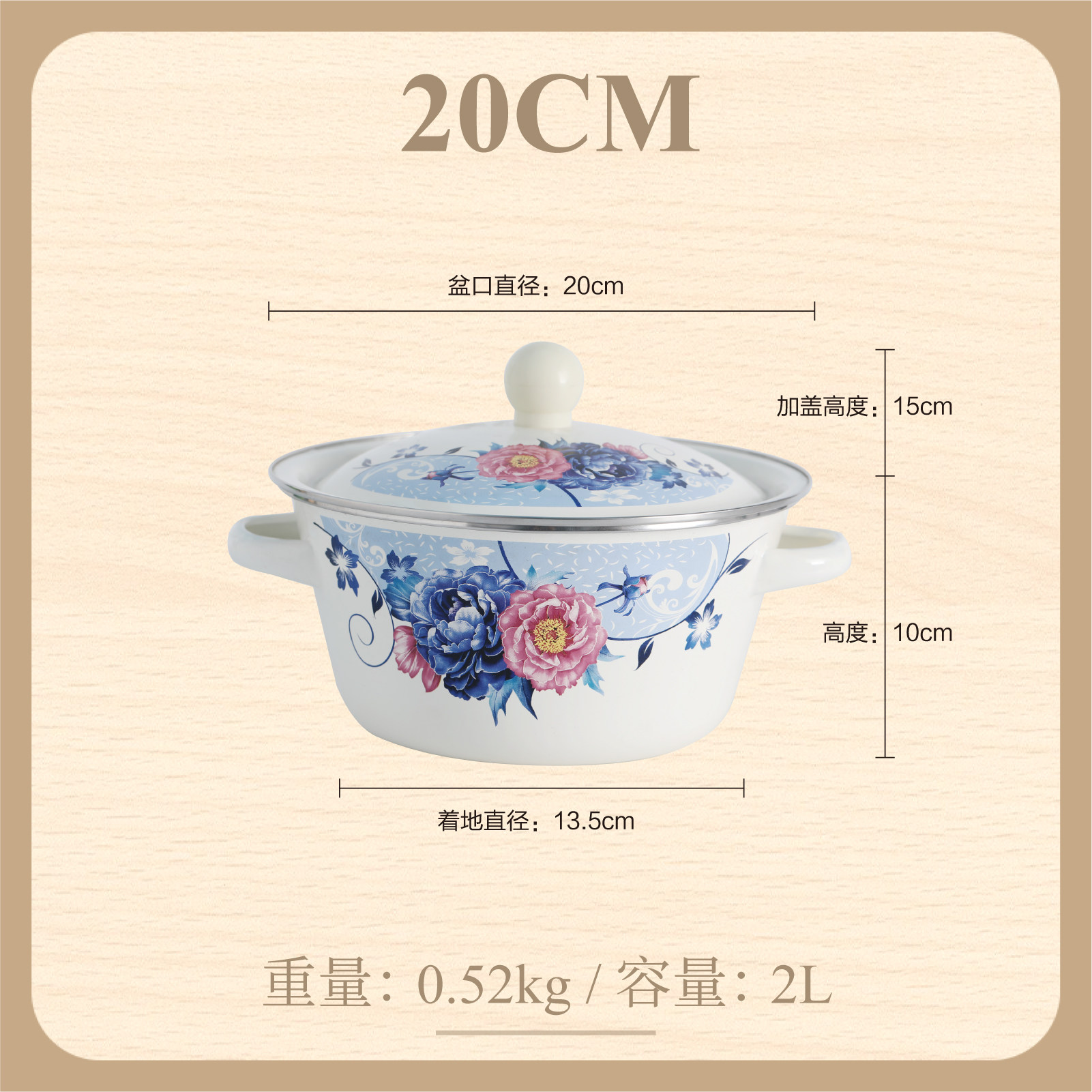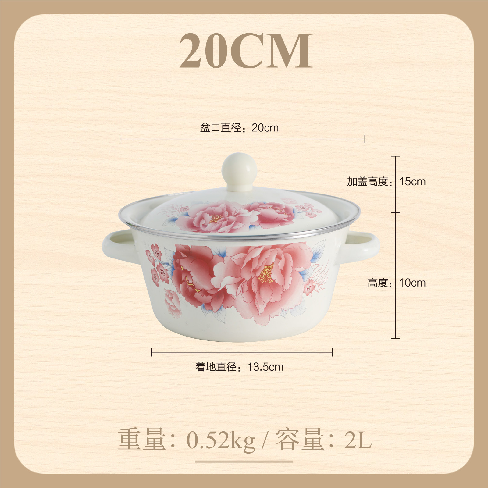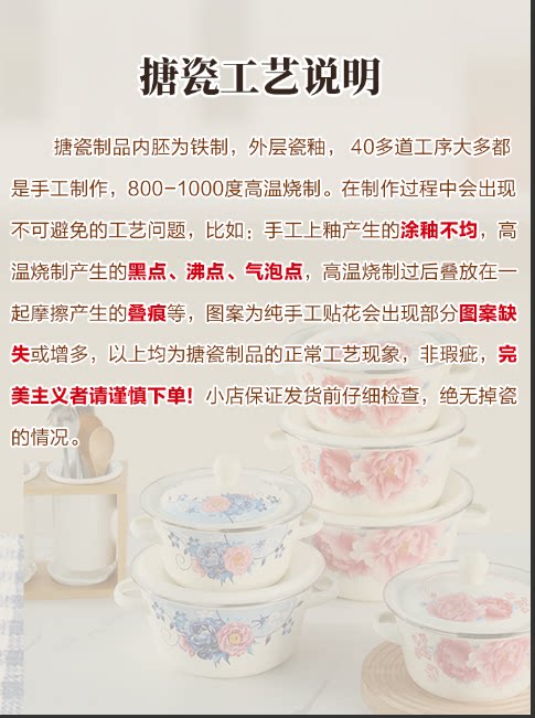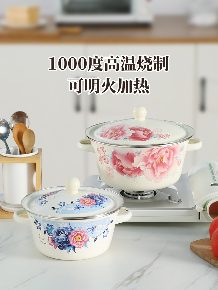 【double-thickened】 girl's spring 20cm (6-inch) double-ear enamel basin