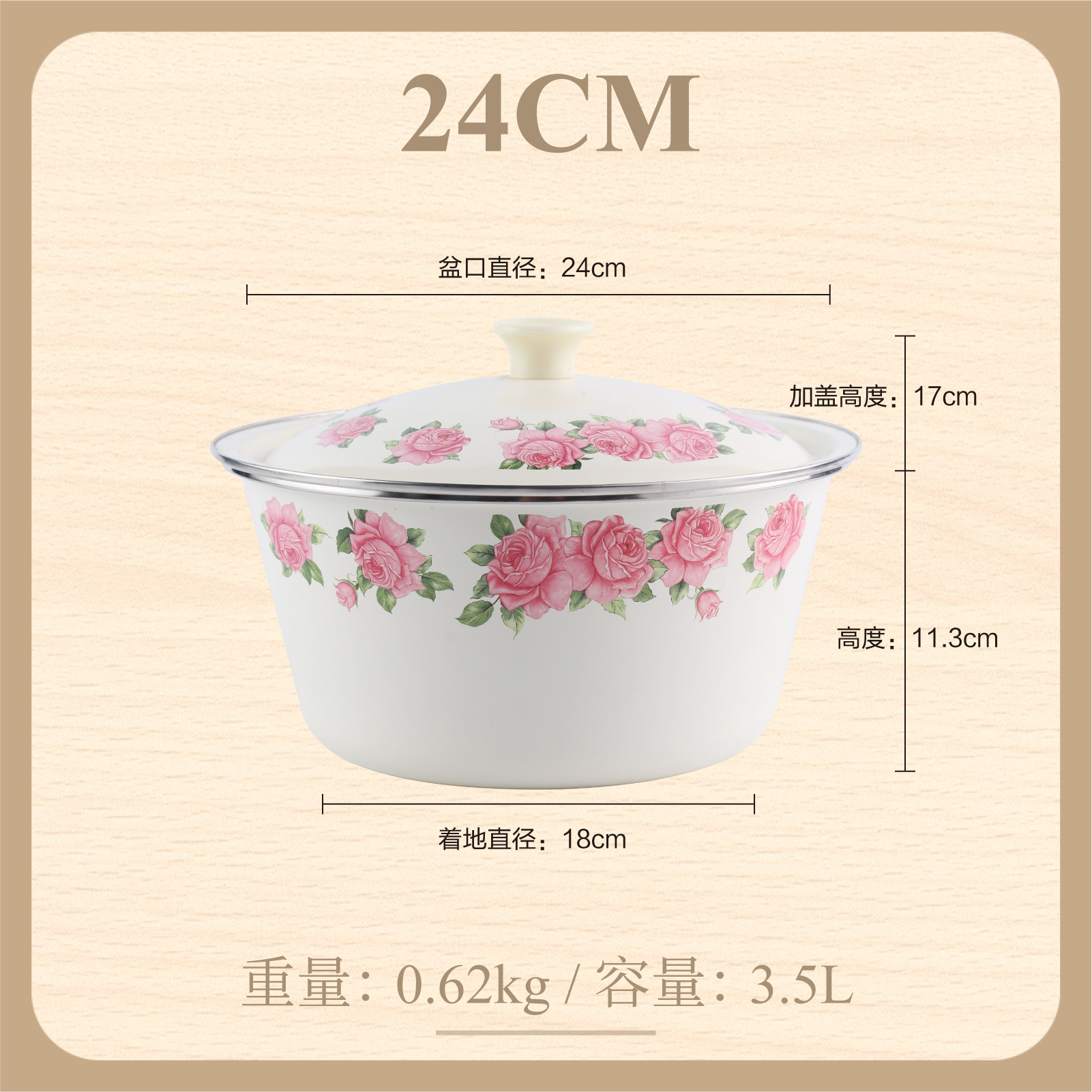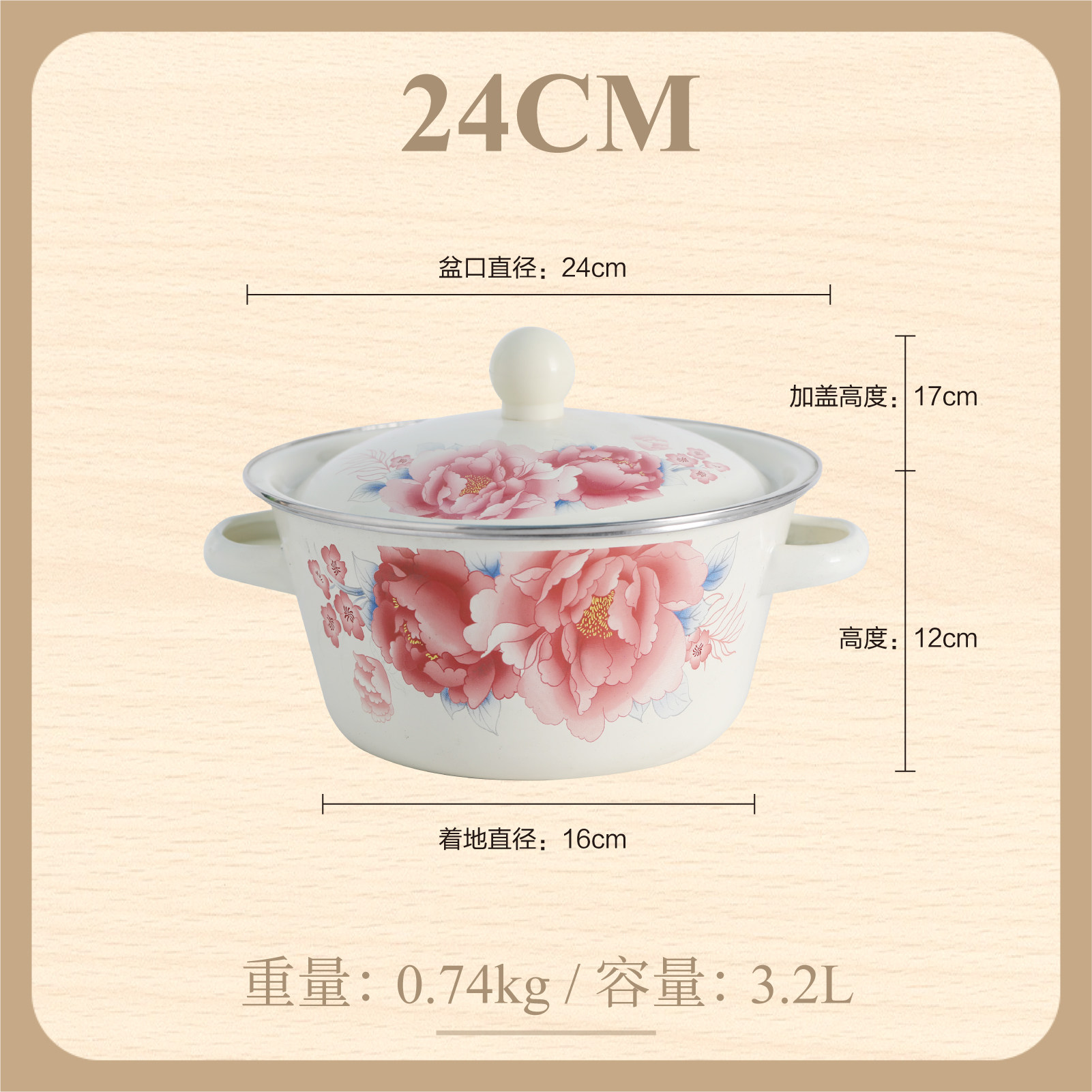 【double-thickened】 girl's spring 24cm (7.2-inch) double-ear enamel basin