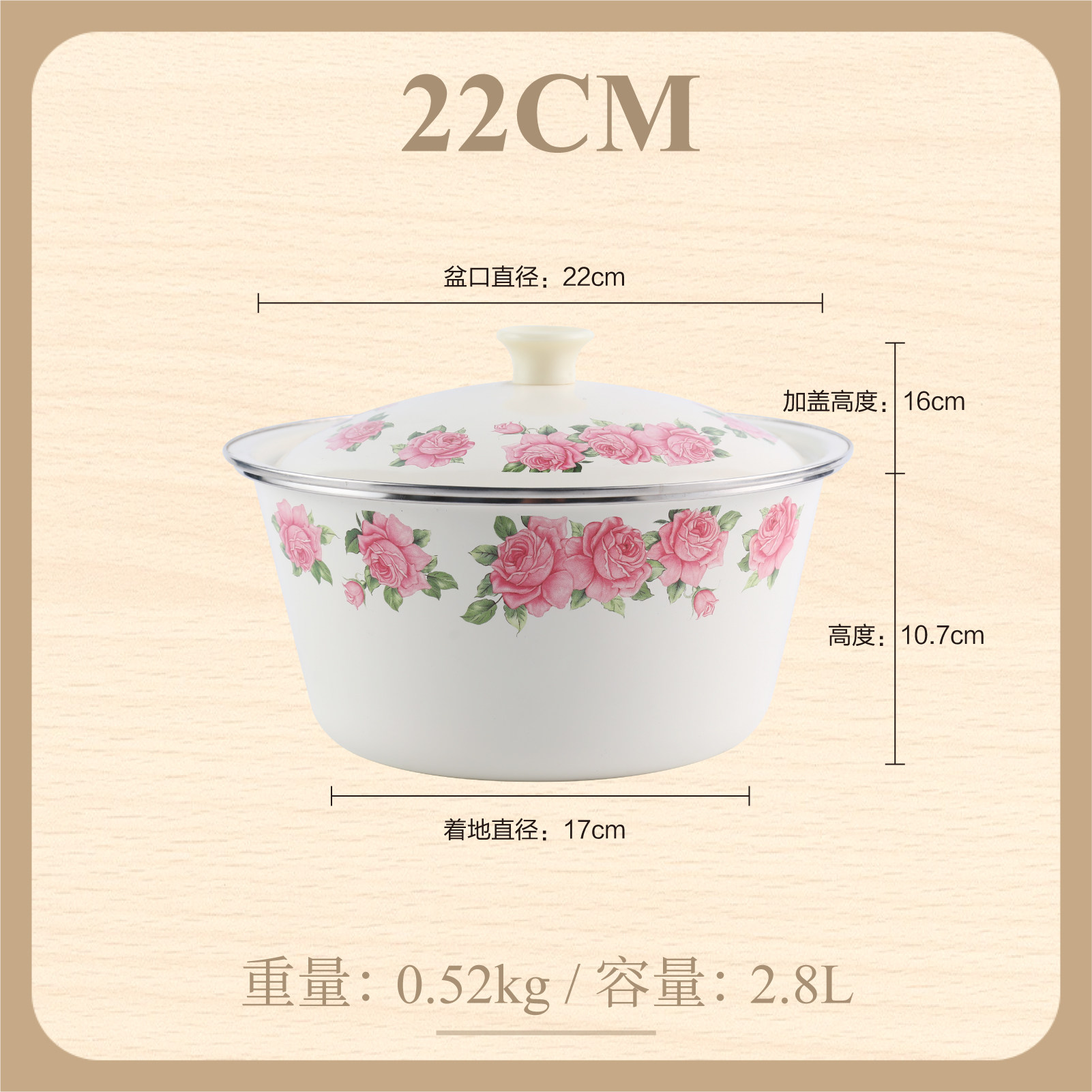 【double-thickened】 girl's spring 22cm (6.6-inch) double-eared enamel basin