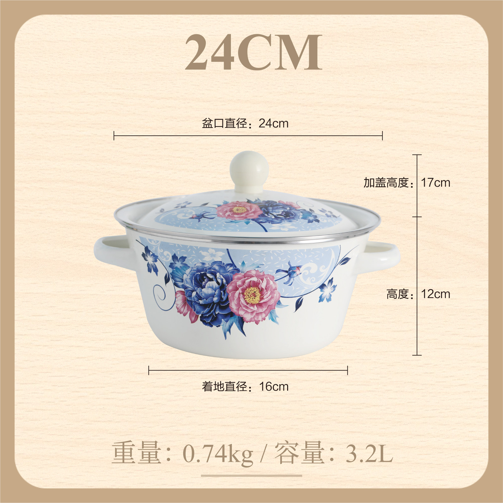 【double-thickened】 happiness matchmaking 24cm (7.2 inch) double-ear enamel basin