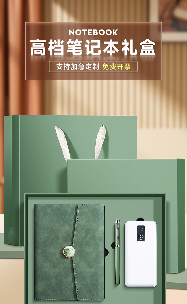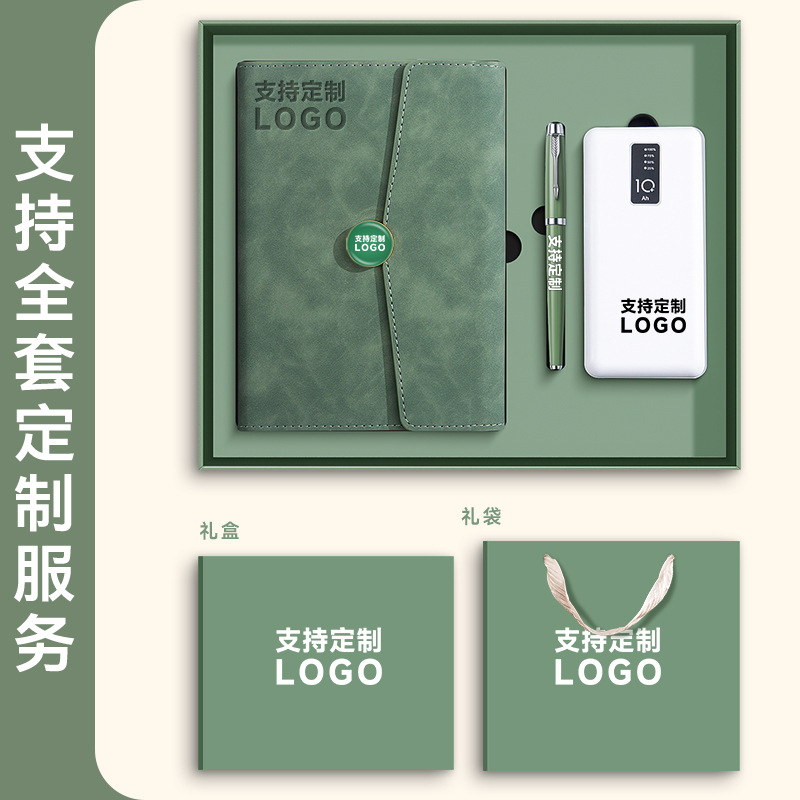 matcha green + pen + u disk + power bank + moisture-proof gift box gift bag