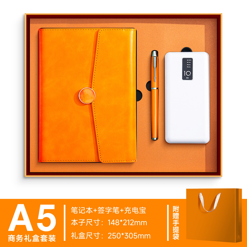 sunset orange + pen + power bank + moisture-proof gift box gift bag