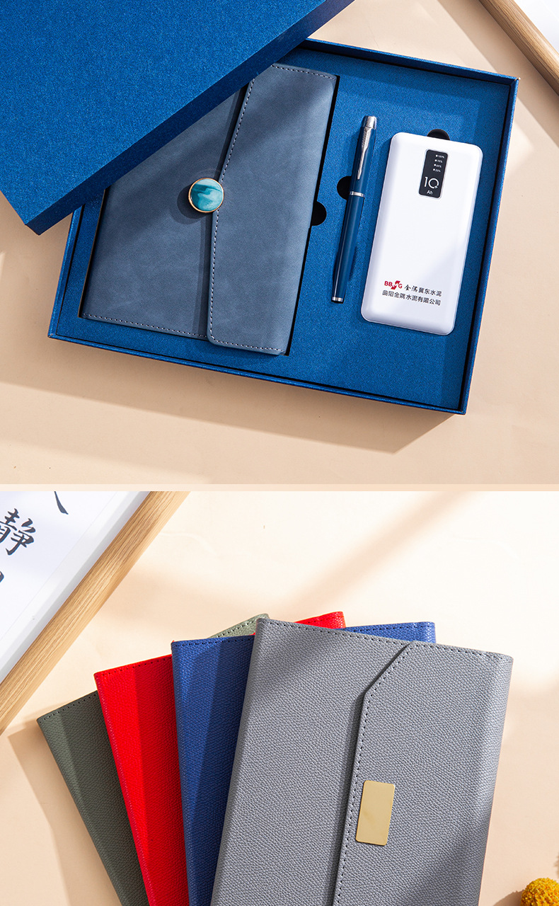 haze blue + pen + u disk + power bank + moisture-proof gift box gift bag