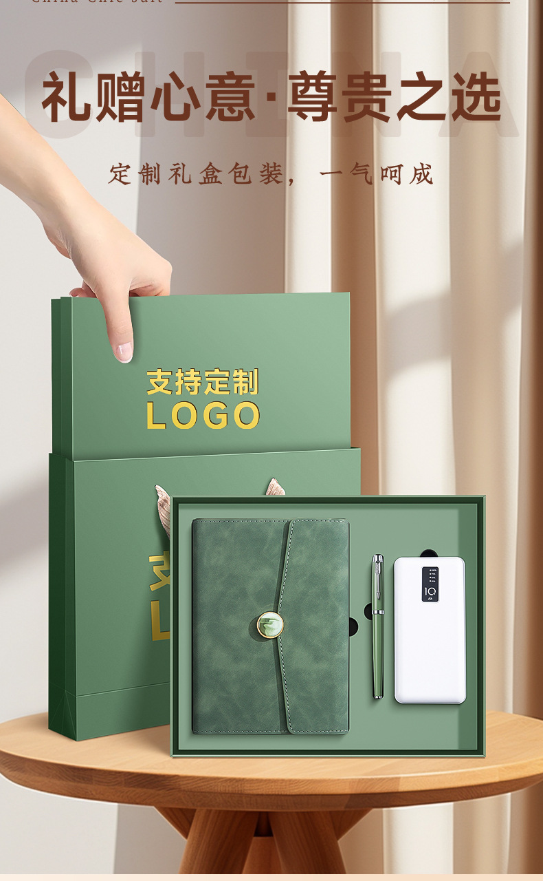 chinese red + pen + power bank + moisture-proof gift box gift bag