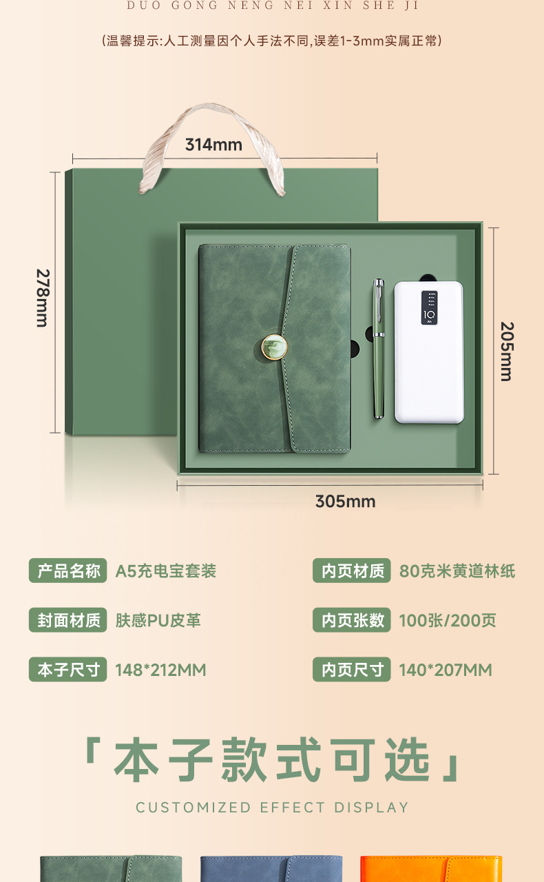 sunset orange + pen + u disk + power bank + moisture-proof gift box gift bag