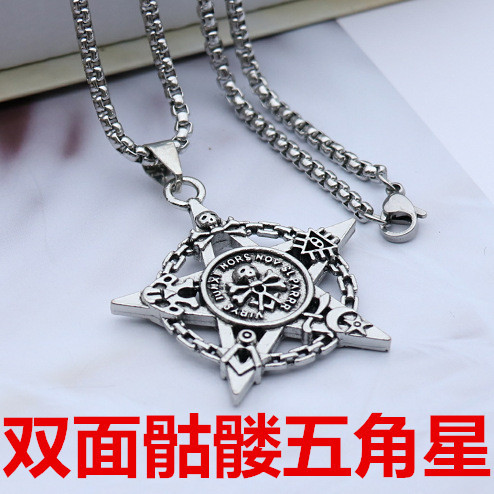 five-pointed star skull + stainless steel bracelet