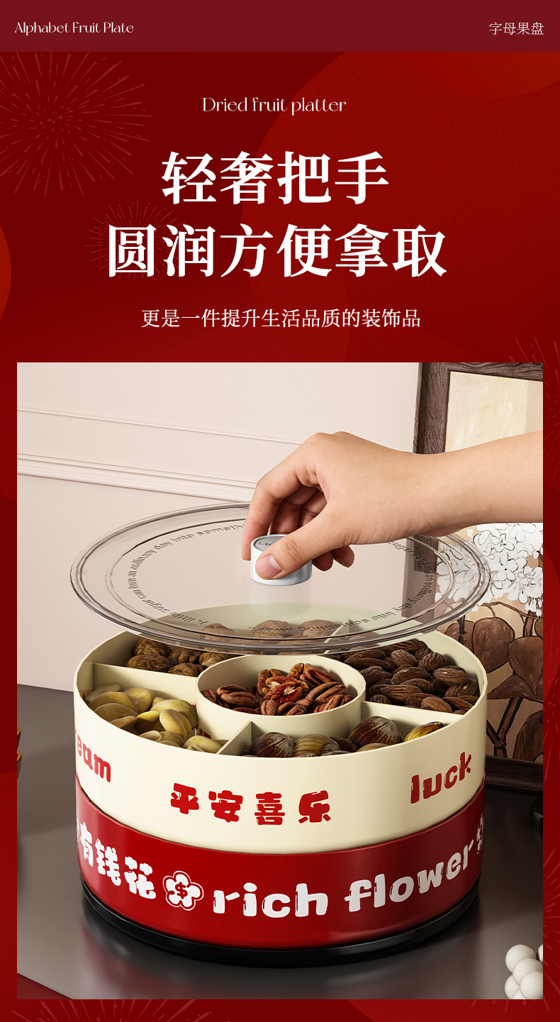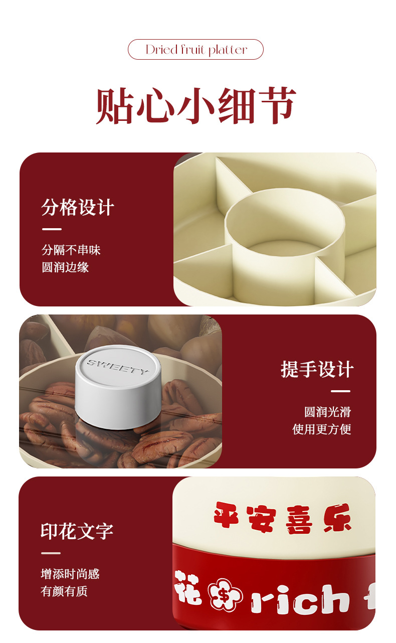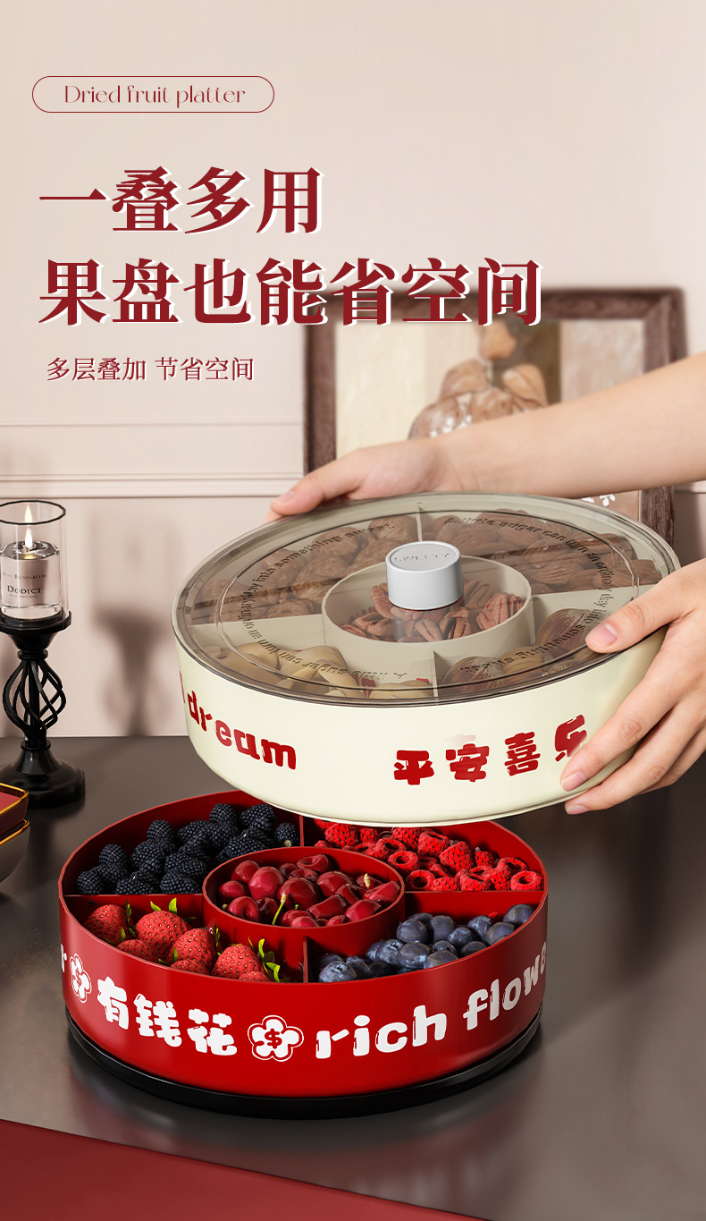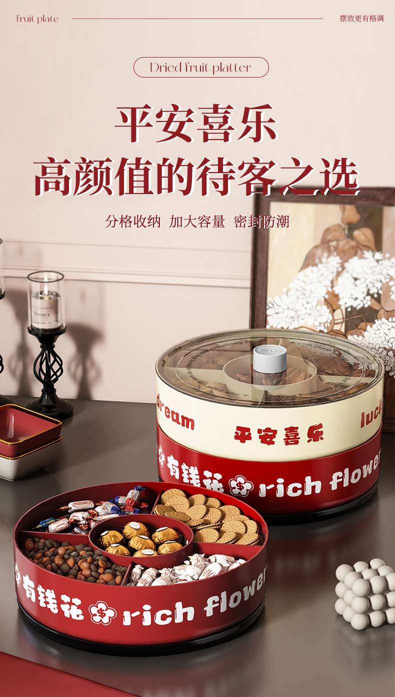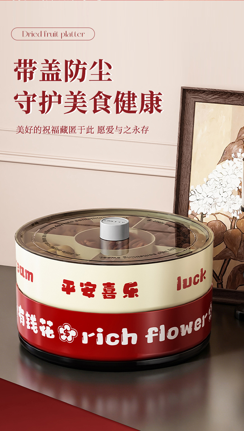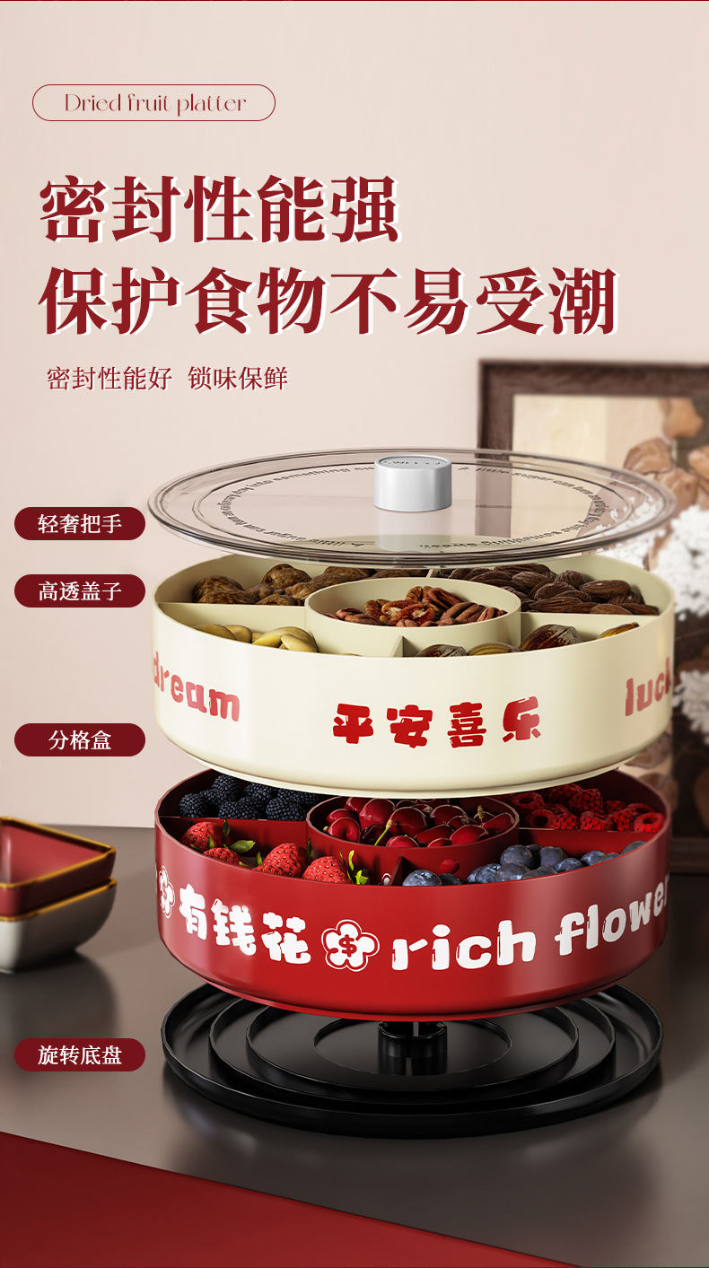 strict selection free shipping ping an xile compartment fruit plate single double layer large capacity festive chinese new year celebration wedding rotatable dried fruit tray
