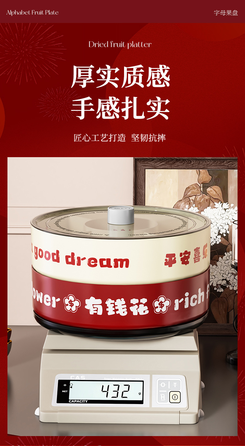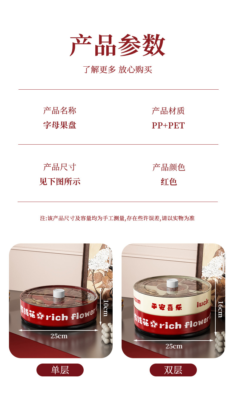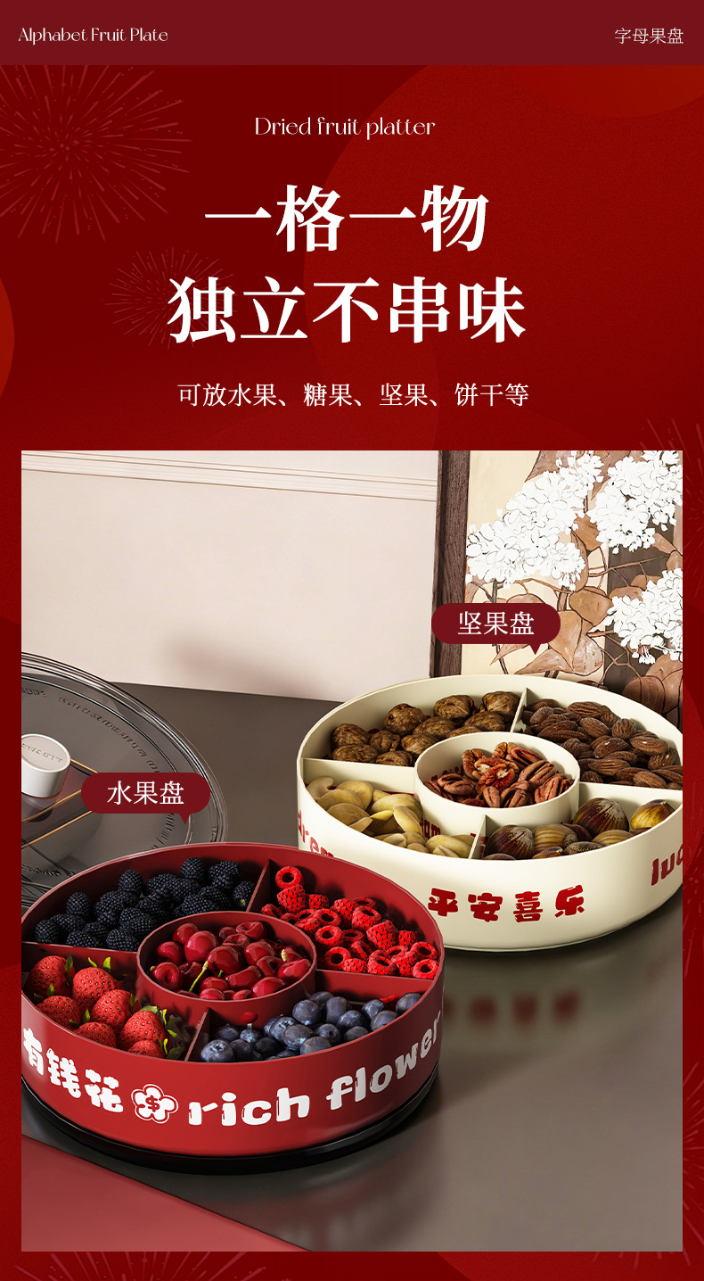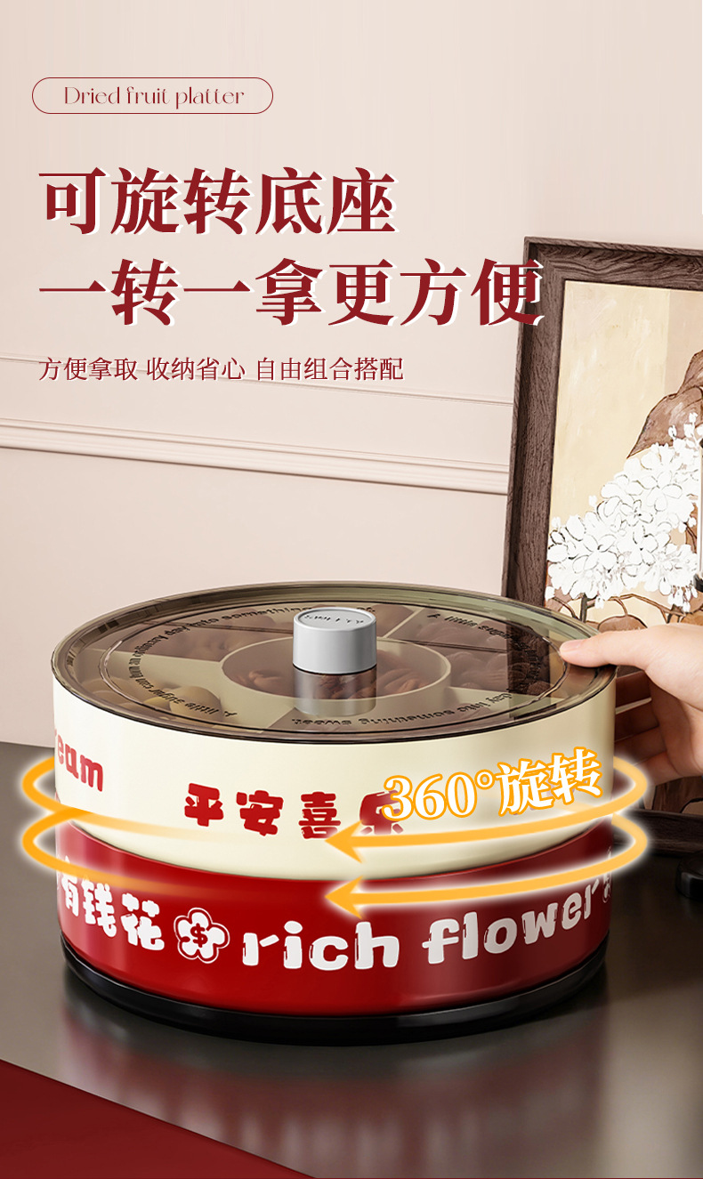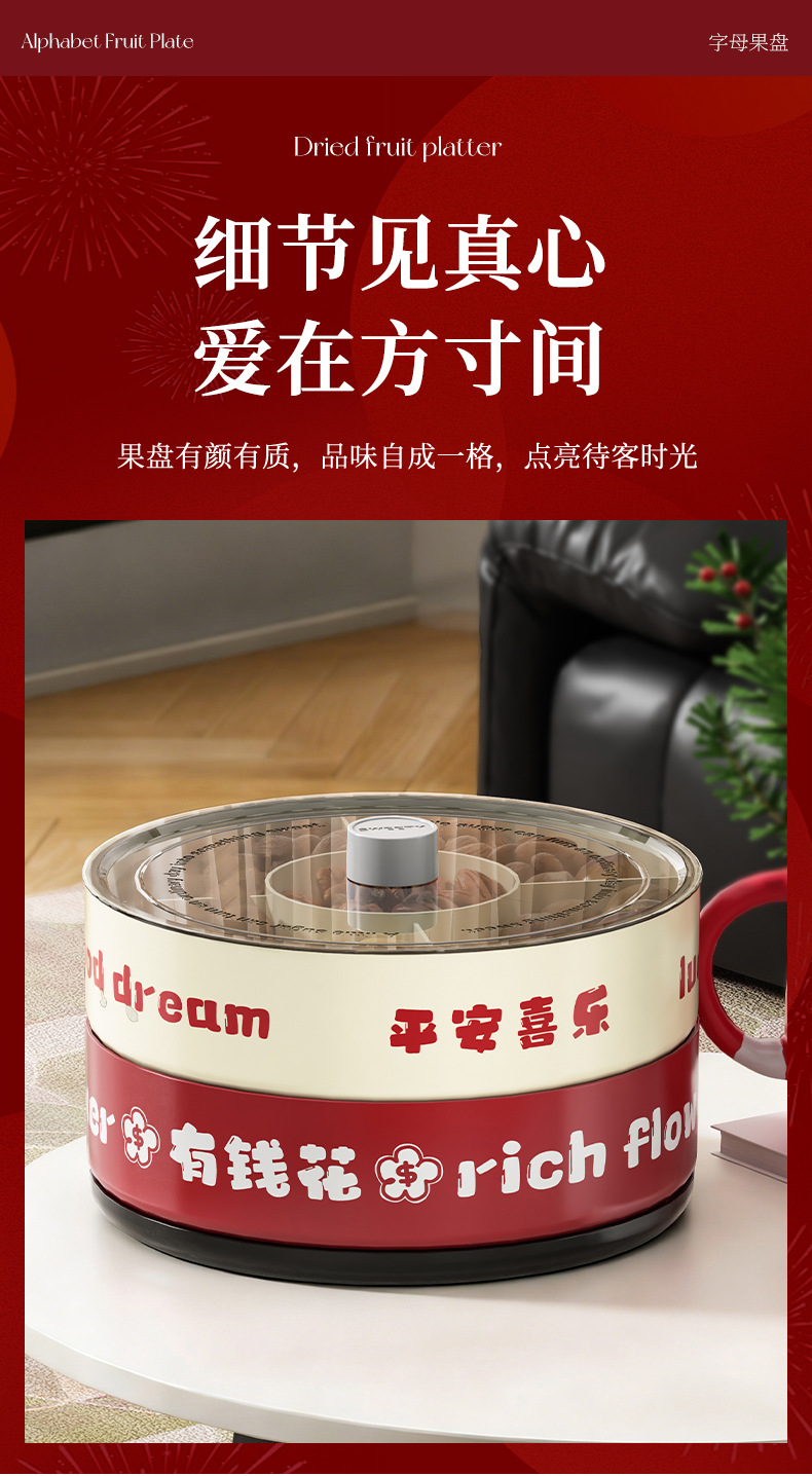 strict selection free shipping ping an xile compartment fruit plate single double layer large capacity festive chinese new year celebration wedding rotatable dried fruit tray