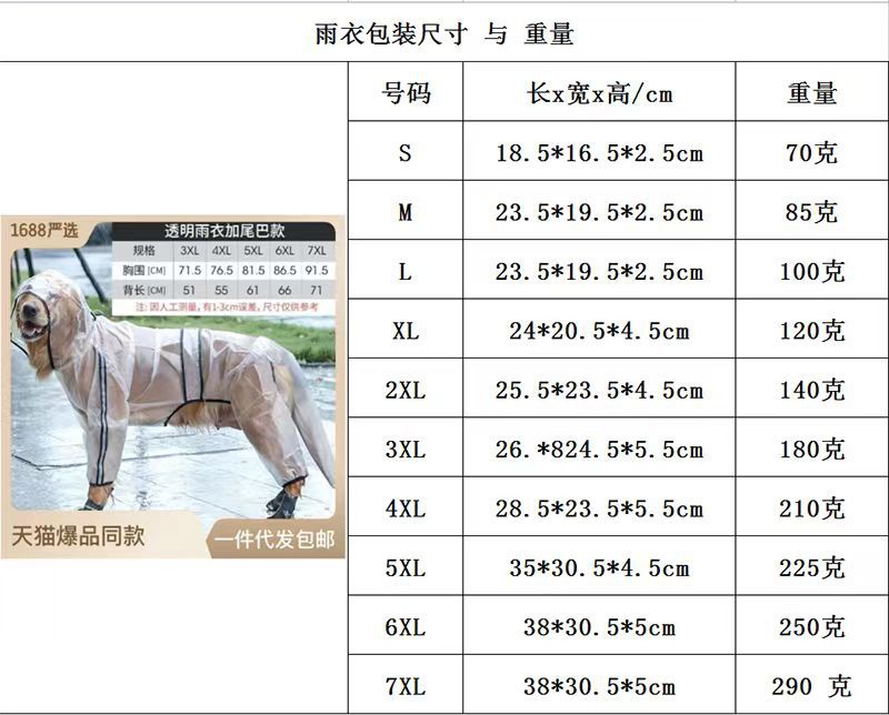 feature 2: pet dog raincoat four seasons universal cross-border hot one piece dropshipping