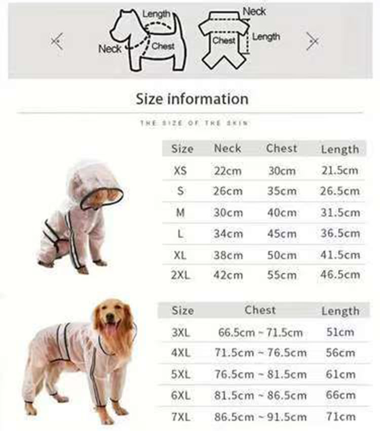 small pet raincoat: medium to large dogs raincoat for common dogs transparent raincoat waterproof windbreaker