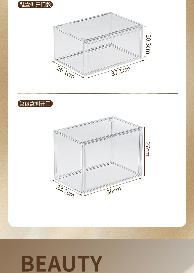 product characteristics: side opening shoe box