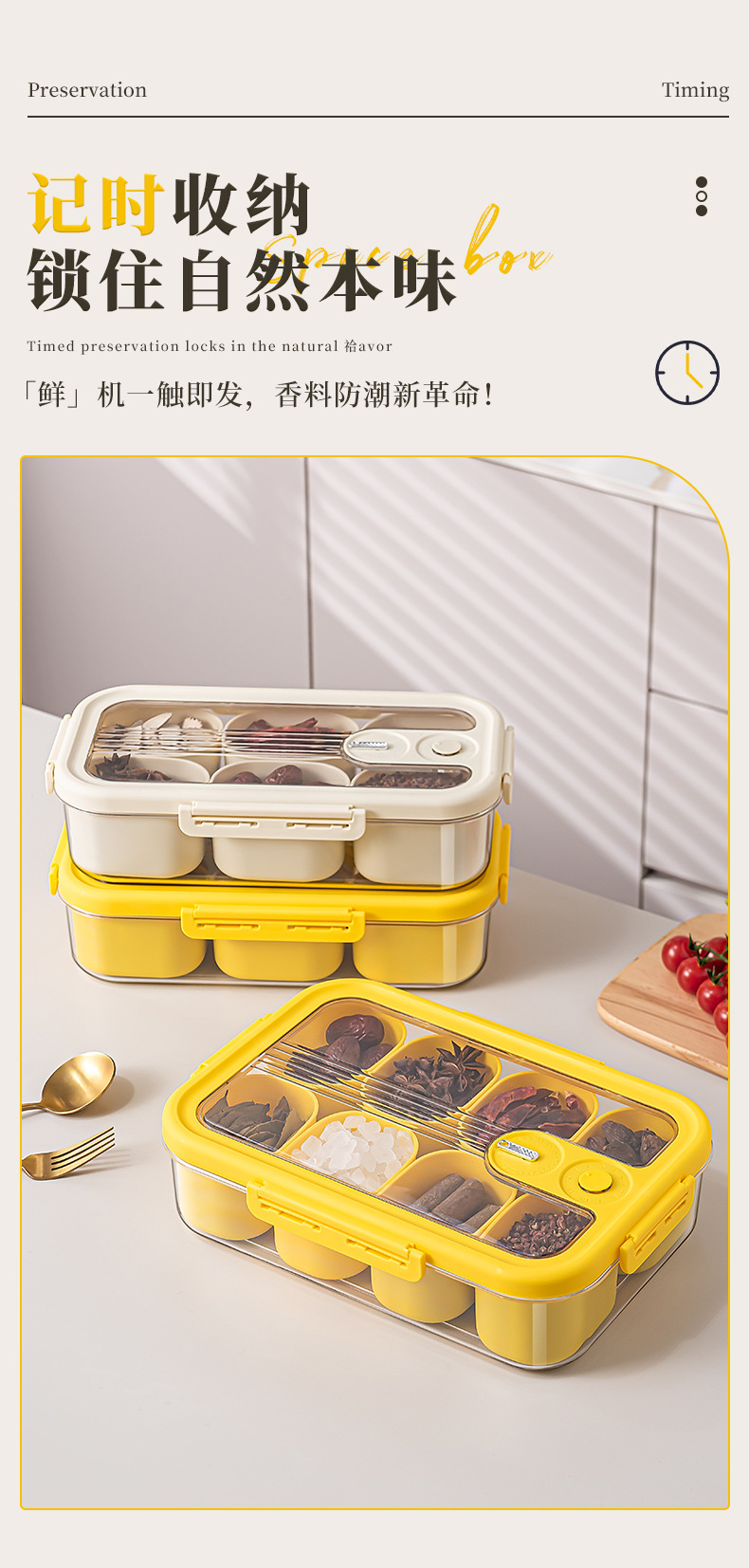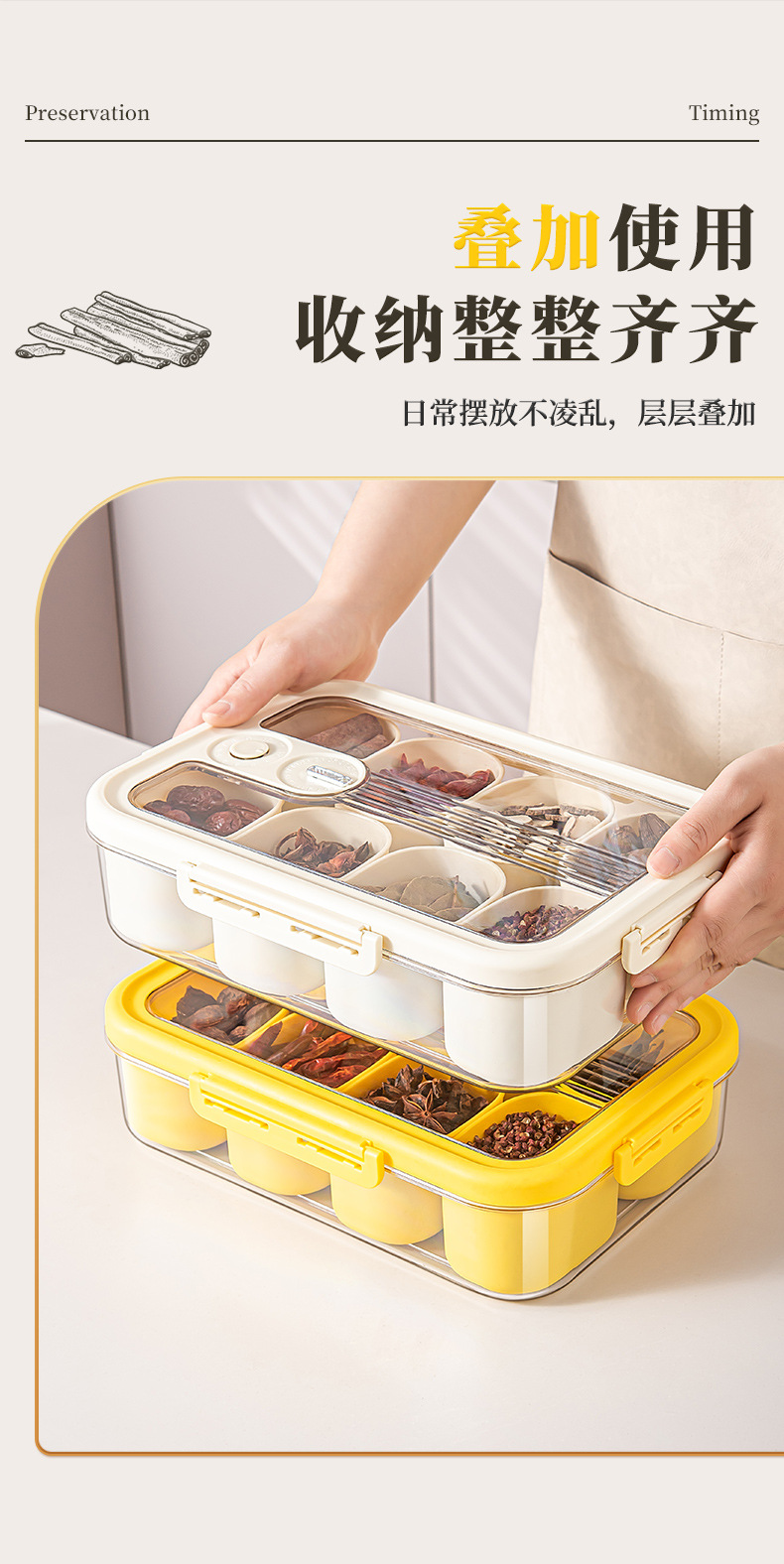 厨房香料收纳盒葱姜蒜保鲜盒可叠加食品密封盒食品级小料分装盒