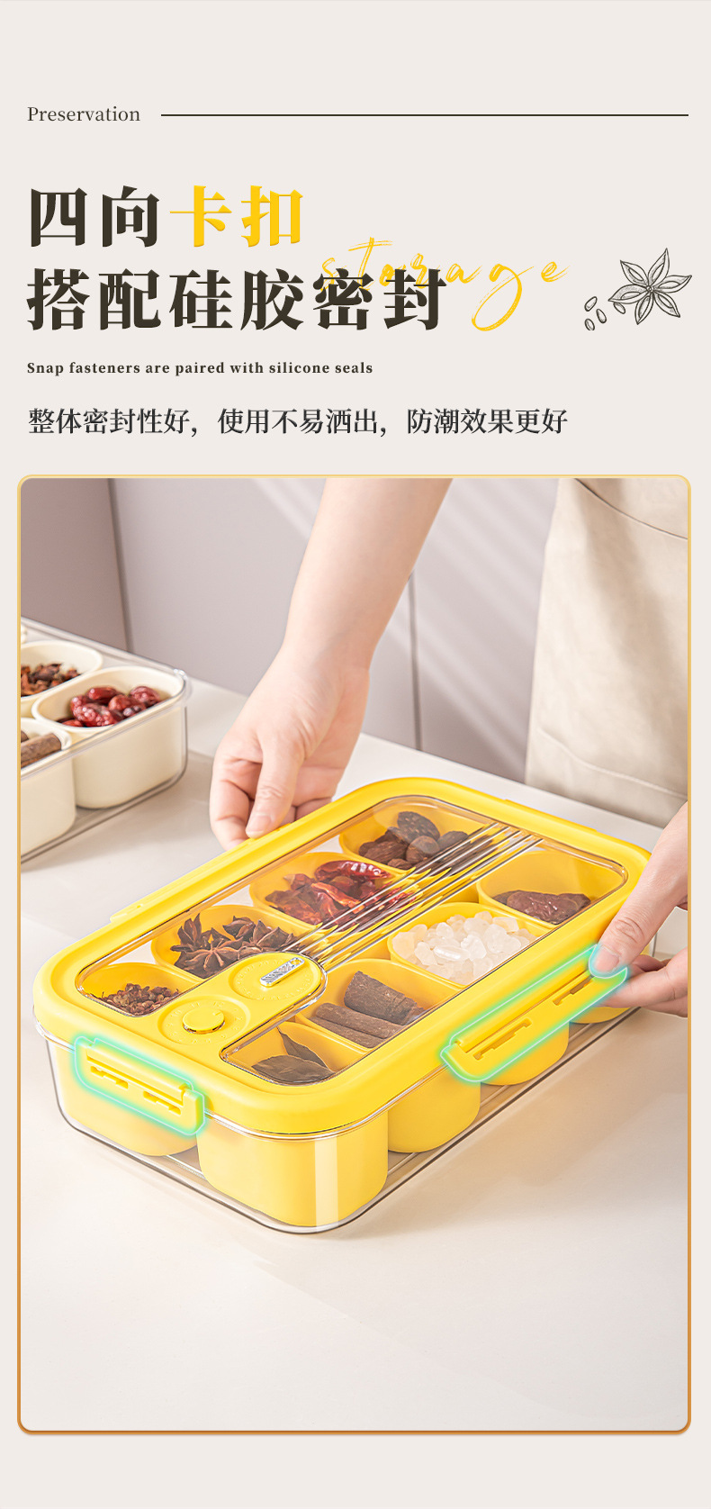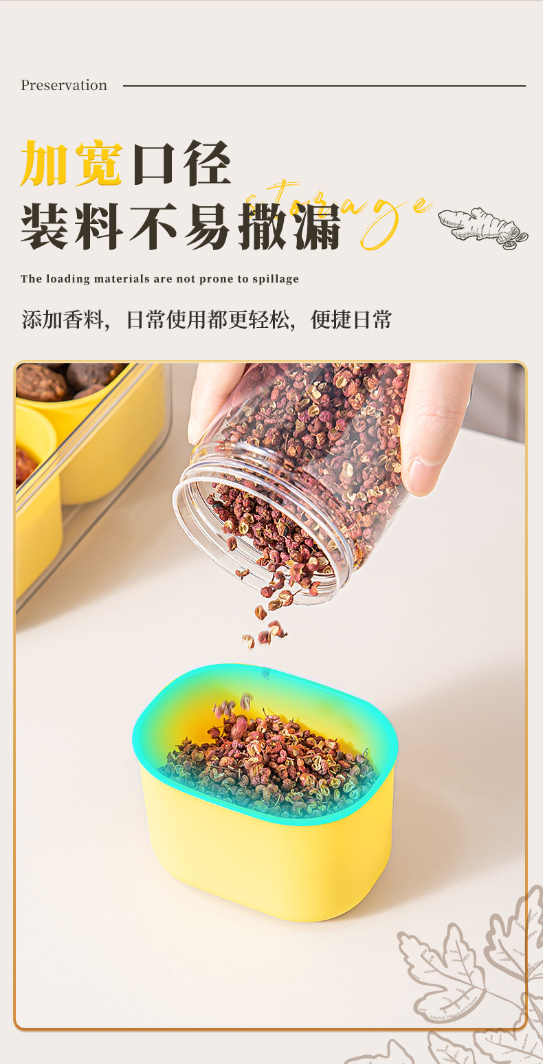 厨房香料收纳盒家用带盖分装收纳储物罐食品级塑料八角调料密封盒