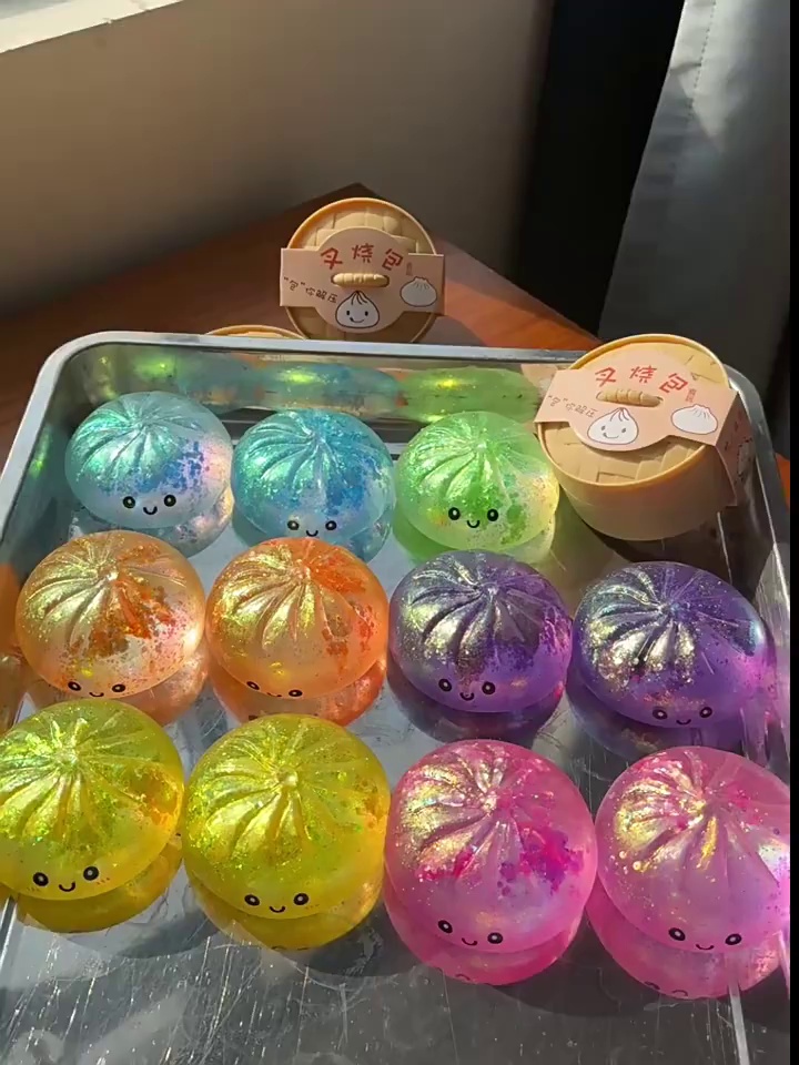large decompression steamed bun [with steamer * gold powder water bead emoji style]
