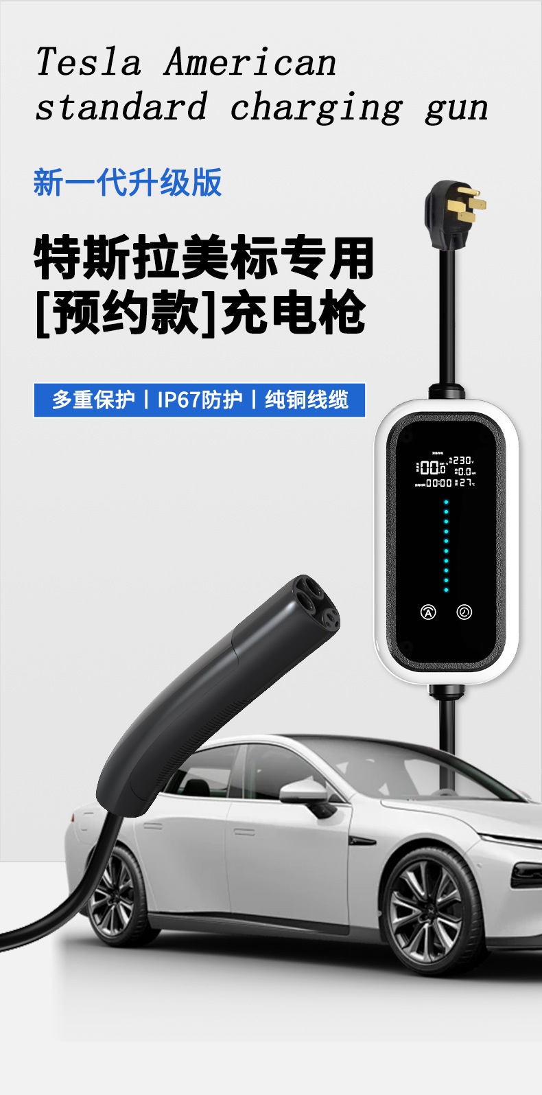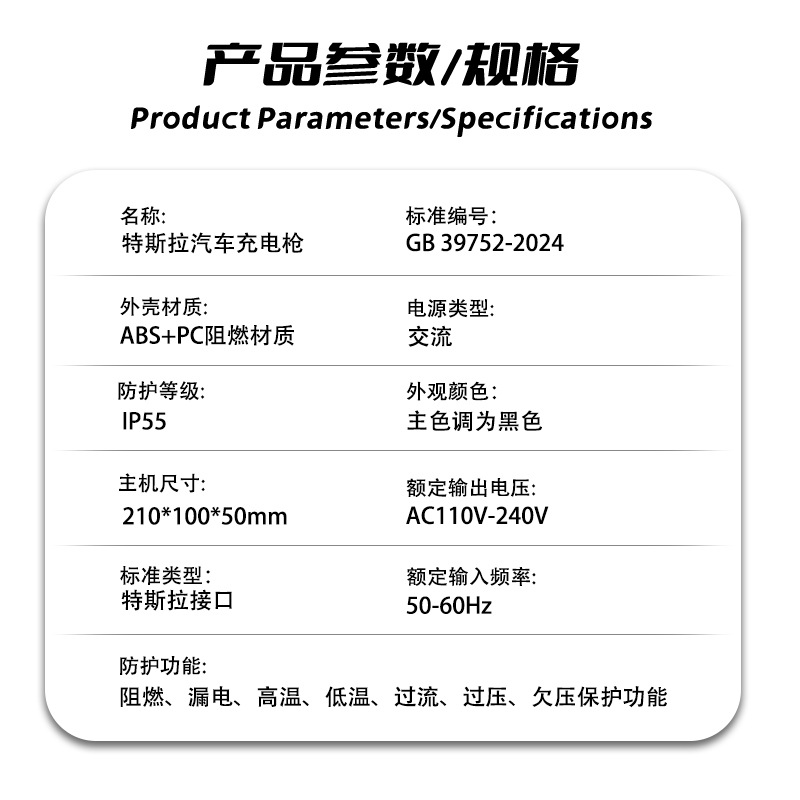 american standard tesla standard charging gun/3 m/32a/7kw-14-50p plug
