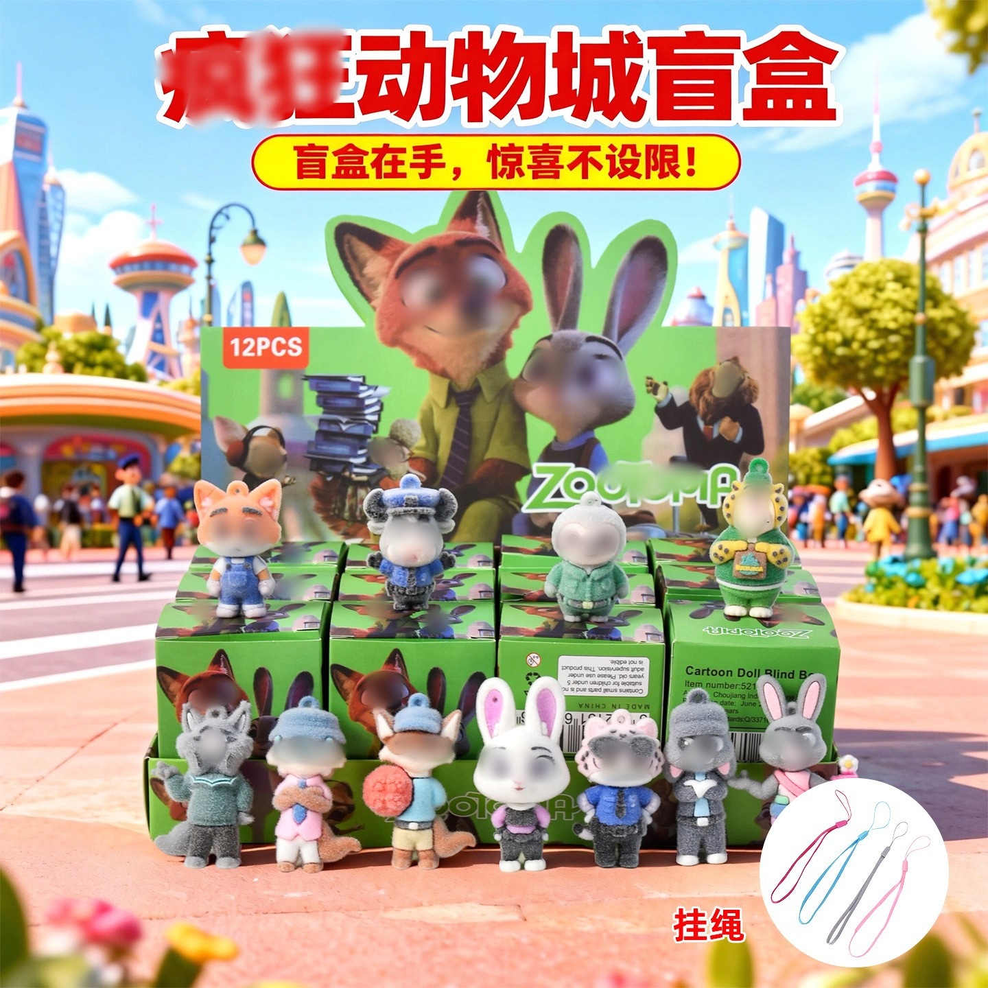 12-piece zootopia blind boxes (flocked lanyard)