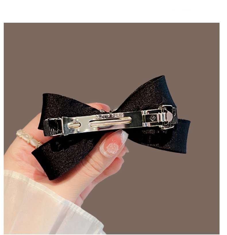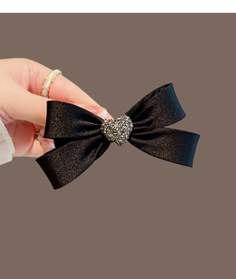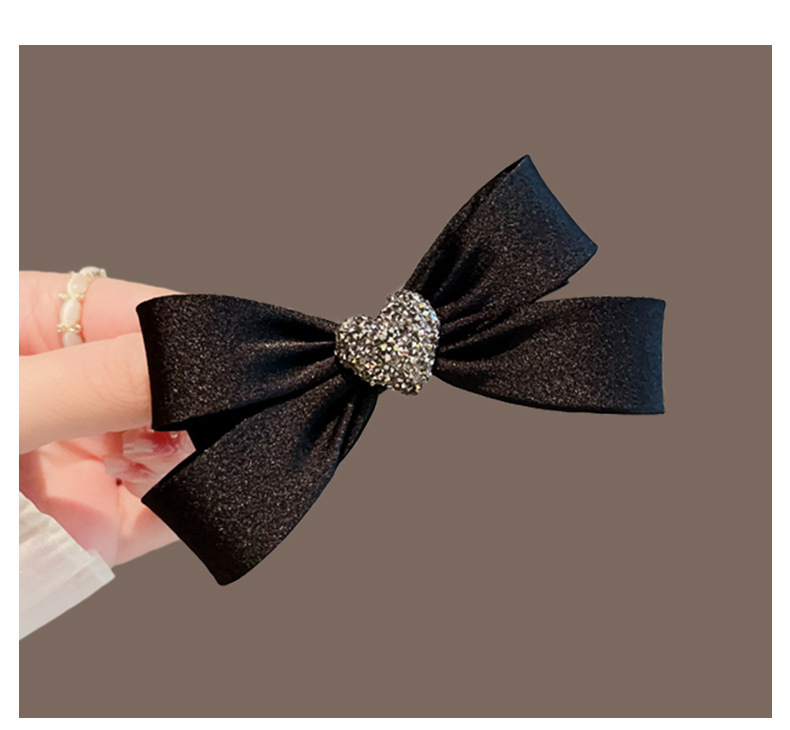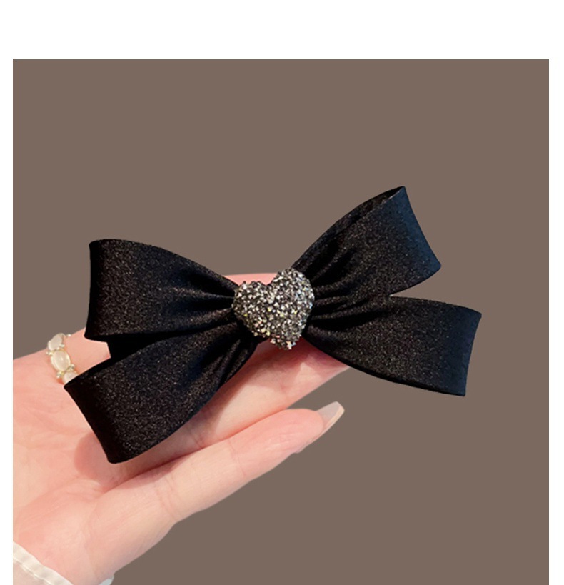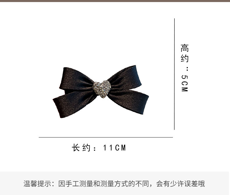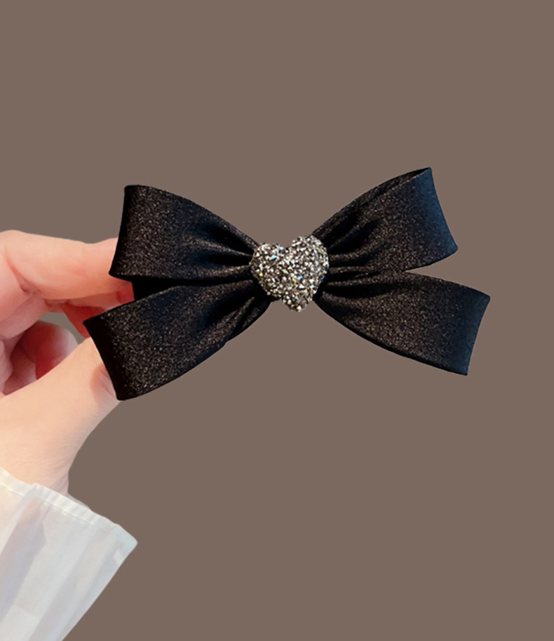 black crystal love heart bow tie barrettes female loose clip back spoon medium hairpin hair ornaments spring clip head accessories