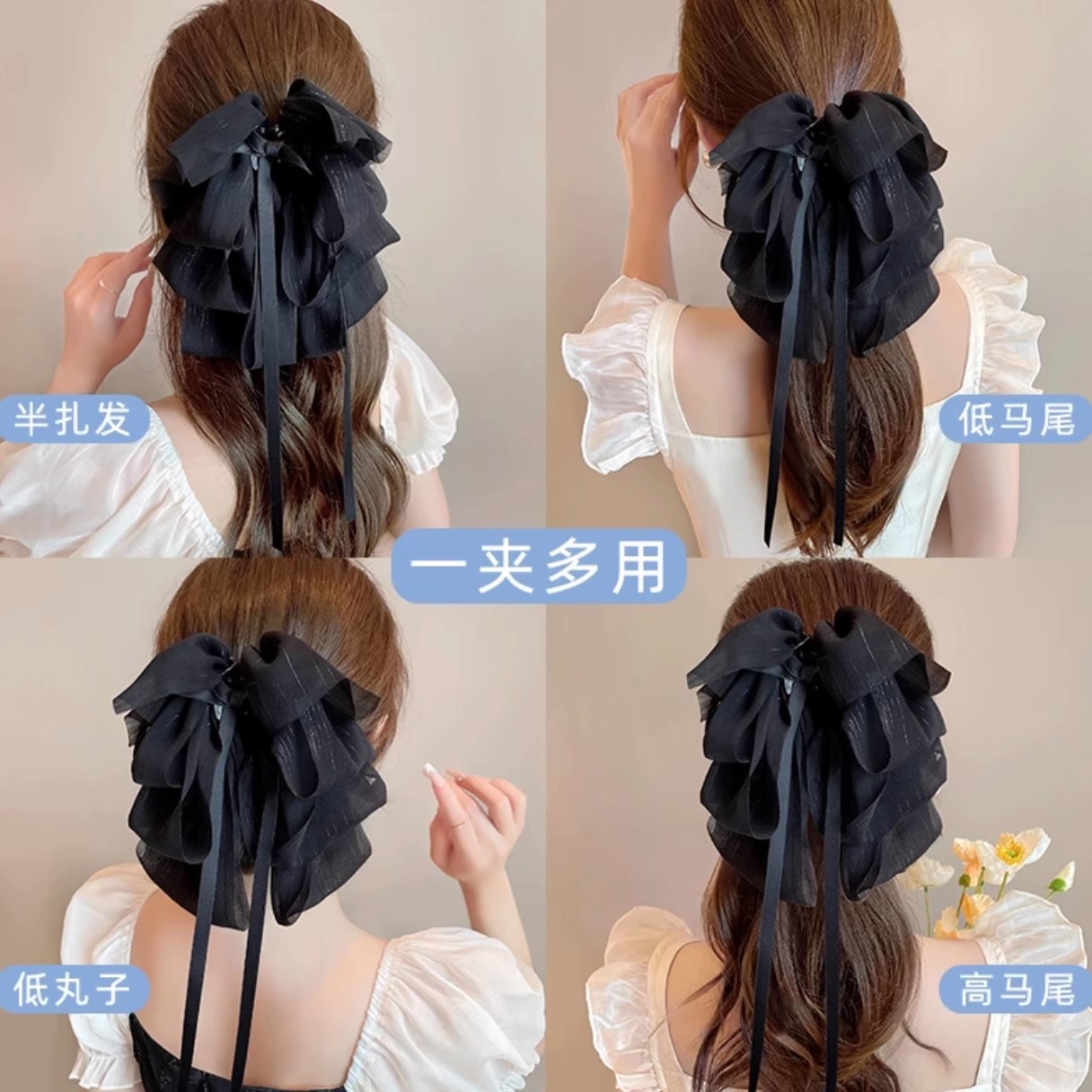 2# black-square clip ponytail clip