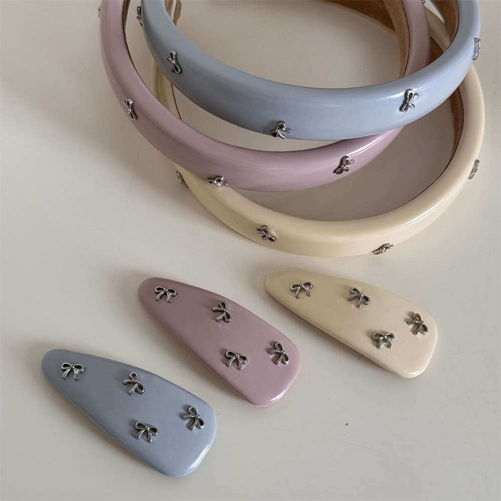 leather little knot-blue barrettes