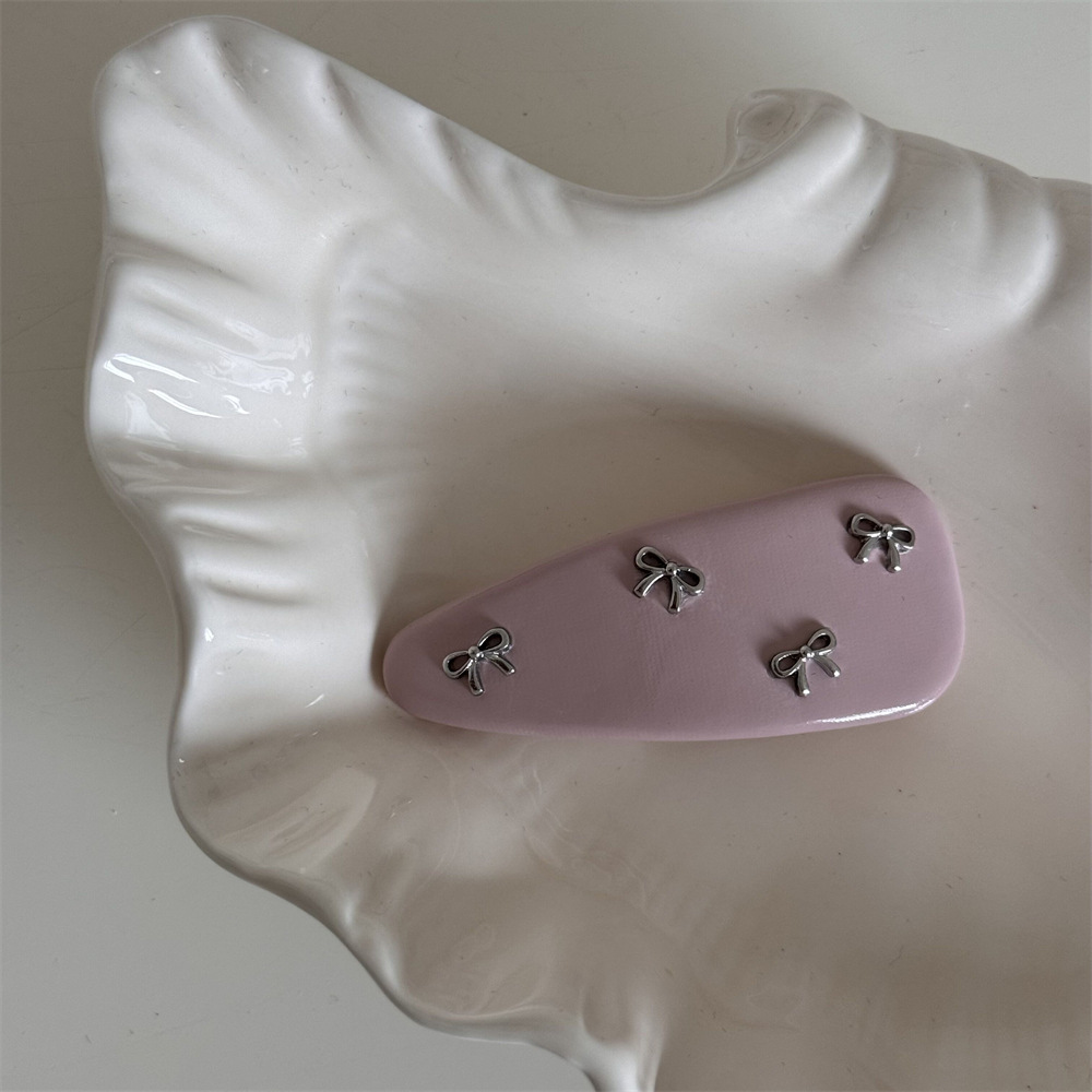 leatherette little knot-pink barrettes
